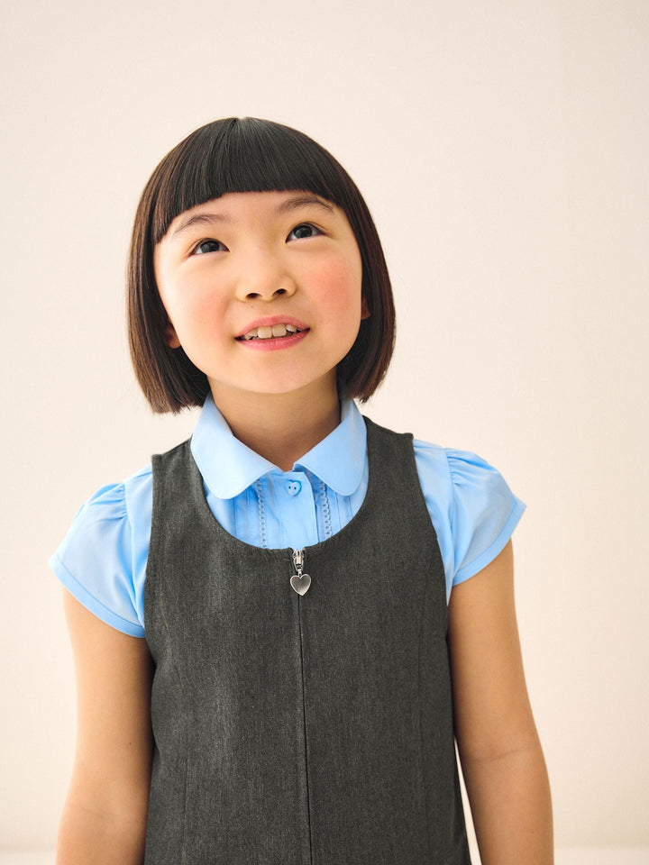 Upgrade her school wardrobe with this zip-front grey pinafore dress. Perfect for layering on top of her school shirt, the playful love heart pull zipper makes this dress easy to wear and adds a fun finishing touch.Coated with a Teflon® Finish and made with a time-saving easy iron fabric, this pinafore features a classic round neck and pleated skirt design. Easy Iron fabric - Handy easy-iron finish Teflon® Technology - Teflon EcoElite™ is a non-fluorinated plant-based finish that repels water and water-based stains for easy cleaning and quick drying. Visit www.teflon.com/ecoelite for more information School pinafore Heart zip pull Pleated skirt Machine washable. 65% Recycled polyester, 35% LENZING™ ECOVERO™ Viscose. Country of Origin: Sri Lanka This product is made with teflon. Teflon® is a registered trademark of DuPont.