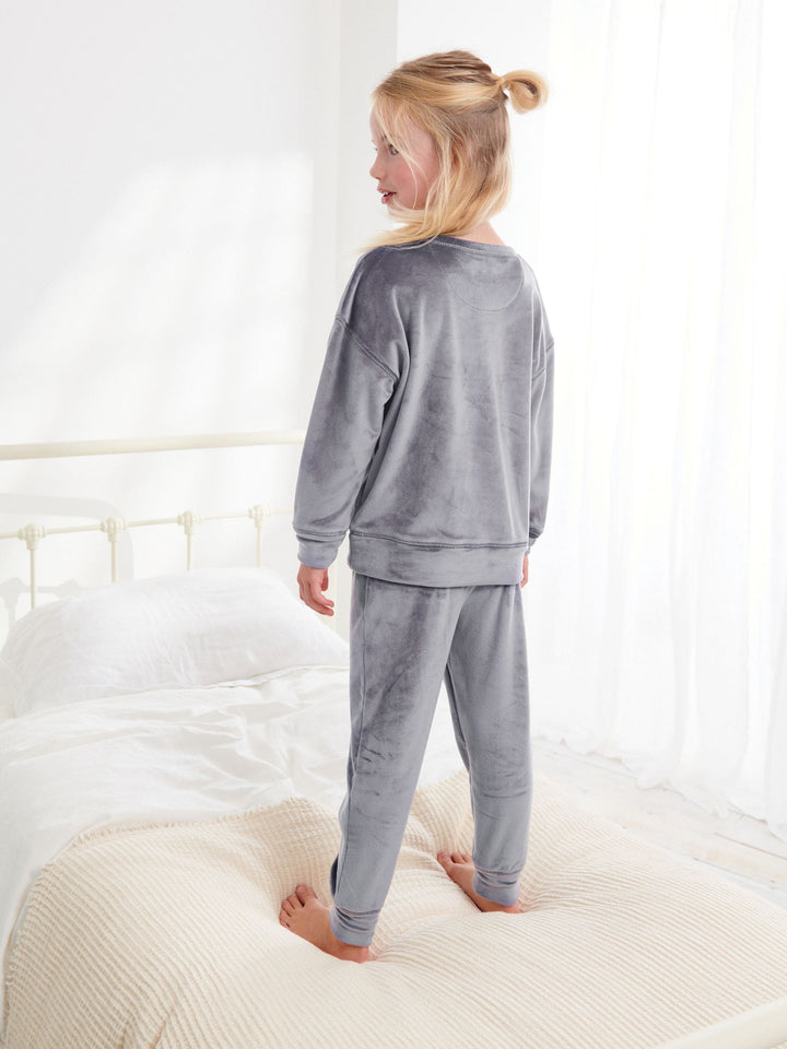 Loungewear with sass and personality. This grey velour lounge set is sure to make it onto their favourite pile. Made from soft touch fleece with a dropped shoulder for effortless cool. Matching bottoms feature a super comfy elasticated waist and cuffs. Next – Your ultimate style destination for all of life’s essentials. With quality at the heart of everything we do, Next interprets the latest trends to create modern, effortless, easy-to-style pieces for your home and wardrobe. The hottest brands and the latest trends: find them all here. Machine washable. Sweater Pyjama Top and Trouser Pyjama Bottom 95% Polyester, 5% Elastane. Country of Origin: China