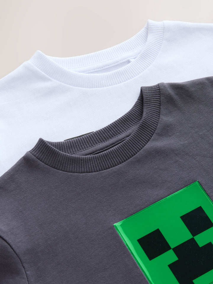 Grey/White 100% Cotton Minecraft Short Sleeve T-Shirts 2 Pack (3-16yrs)
