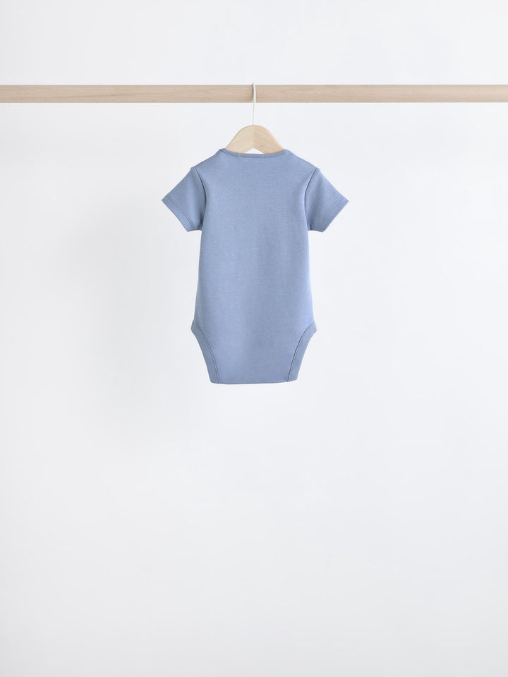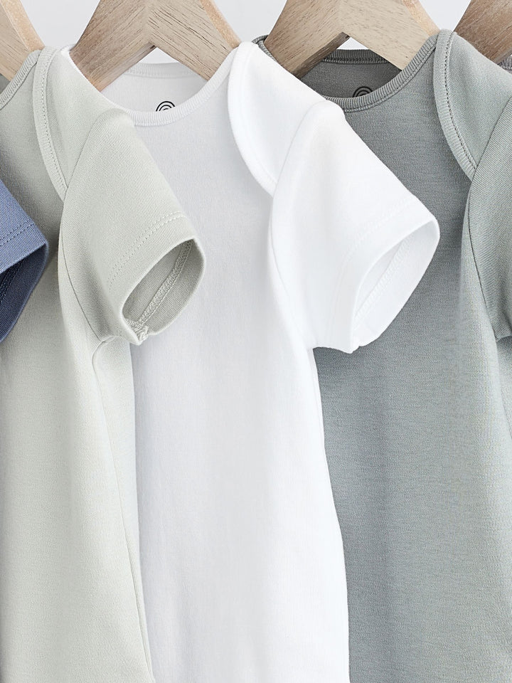 Keep your little one stocked-up on comfort staples with this grey, blue and white 5-pack of pure cotton bodysuits, featuring an envelope neck opening and a popper bottom fastening for easy changing. 100% cotton 5-pack Short sleeves Envelope neck opening Popper bottom fastening Machine washable. 5 x Bodysuit 100% Cotton. Country of Origin: Sri Lanka Warning: Keep away from fire and flames.