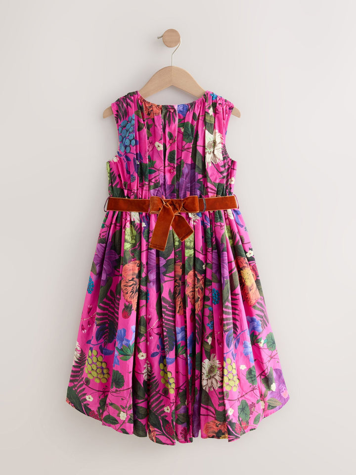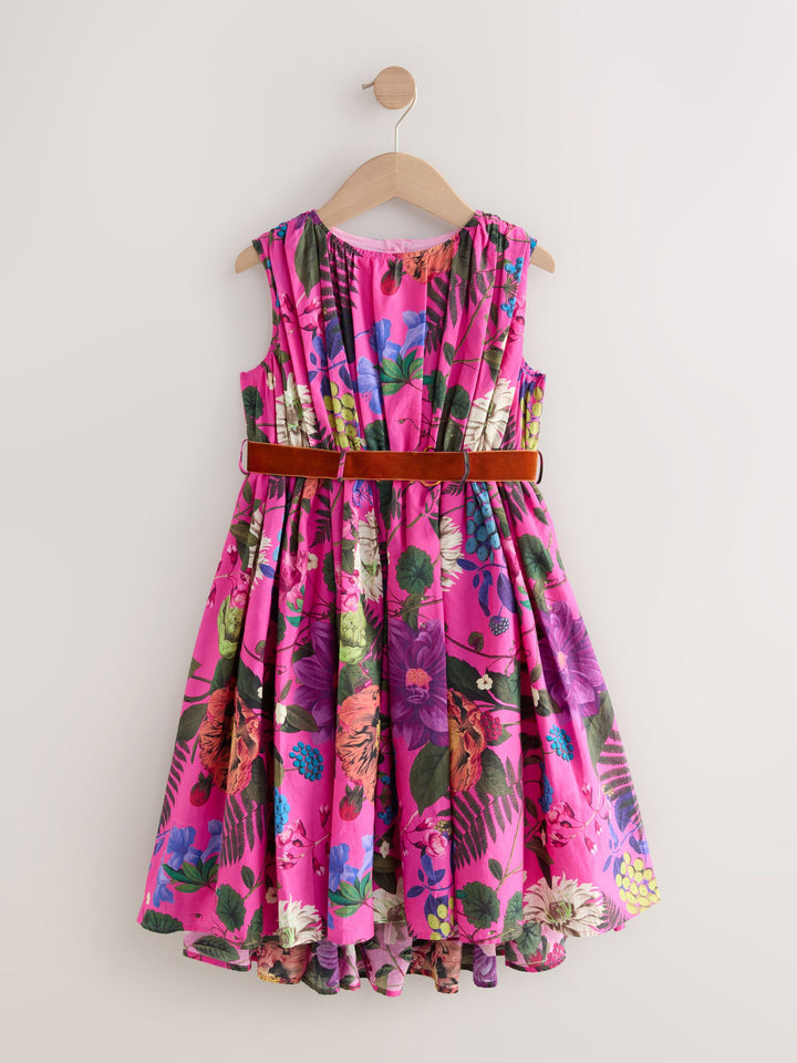 Perfect for prom, a wedding or an extra special family get-together, this gorgeous dress has a sleeveless shape that's great for summer, featuring an all-over floral print inspired by the Royal Botanical Gardens, finished with a round collar and a button-fastening to the back. Bring the outside in with our stunning womenswear Kew Collection by Next. Crafted using botanical prints from the archives at the Royal Botanic Gardens, Kew, discover this elegant collection filled with special occasion pieces made for all of your summer events. With profits from this collection supporting RBG Kew's vital work, this is a range designed to make you feel and look good this season. Sleeveless Round collar Kew Collection Floral print Button fastening Main 100% Cotton. Lining 100% Cotton. Mesh 100% Polyester. Country of Origin: Turkey