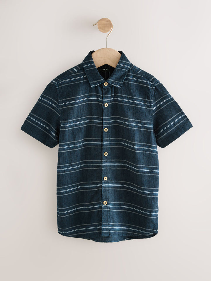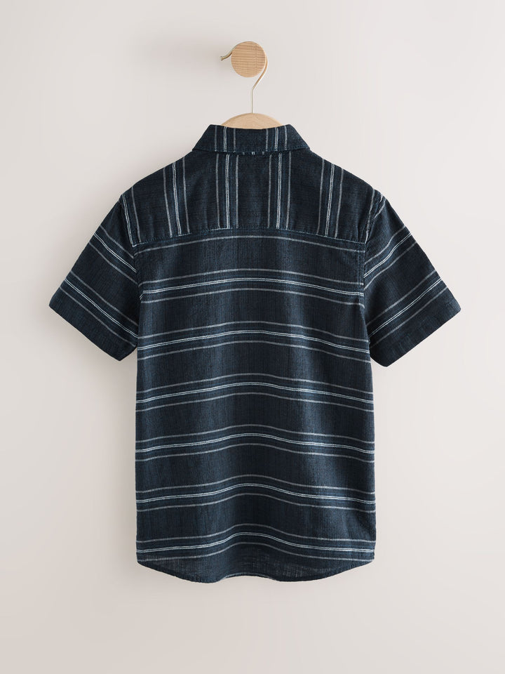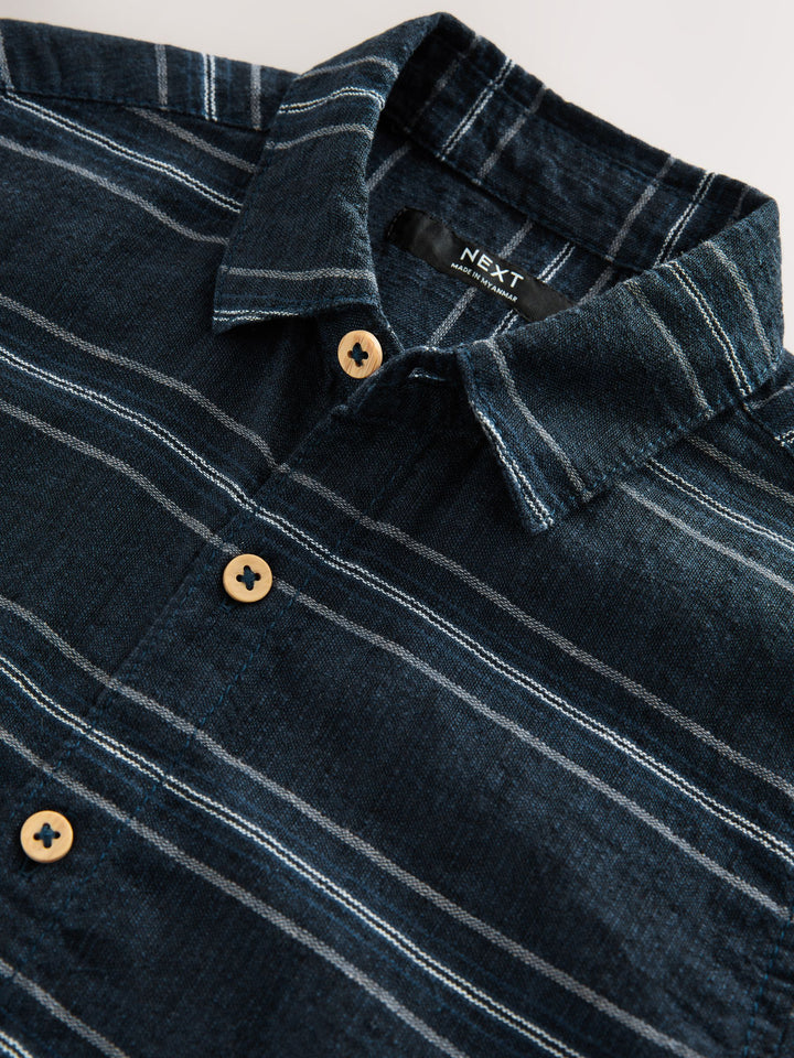 Indigo Blue Stripe Short Sleeve Linen Blend Stripe Shirt (3-16yrs)