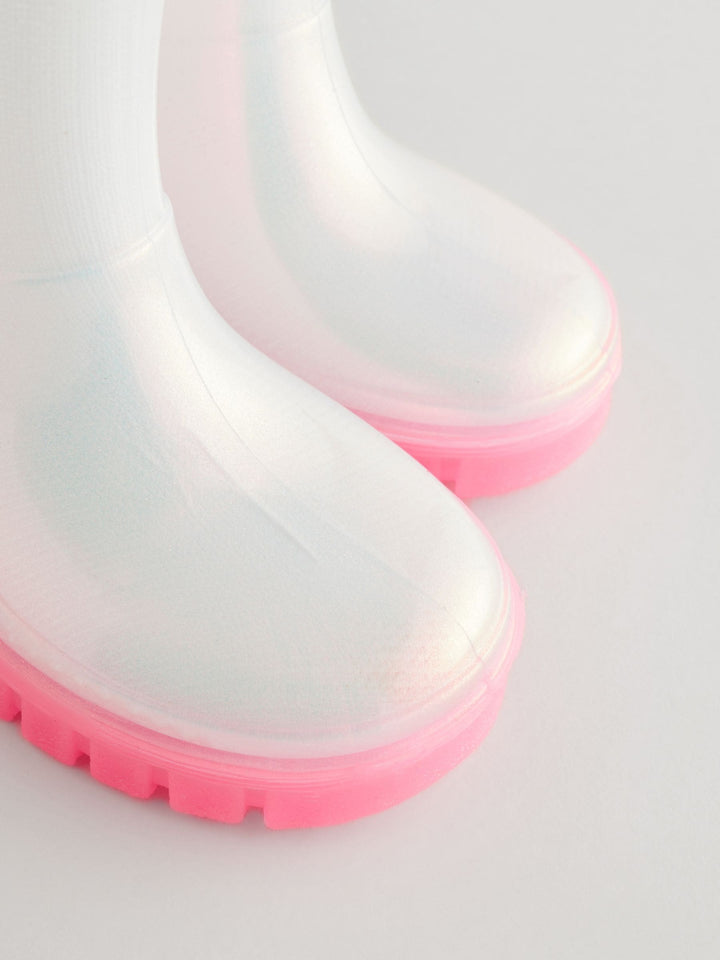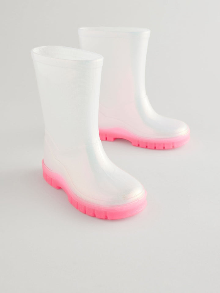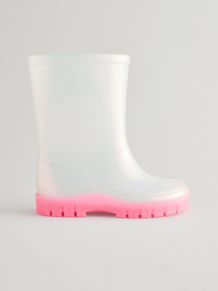 Make her rainy days even more fun with our PVC wellies. Perfect for the wet British weather, these wellie boots are coated in a fun shimmer design and feature a slip resistant durable sole. PVC wellies Shimmer design Slip resistant sole Upper - Other Materials, Lining & Sock - Textile, Sole - Other Materials. Country of Origin: Great Britain