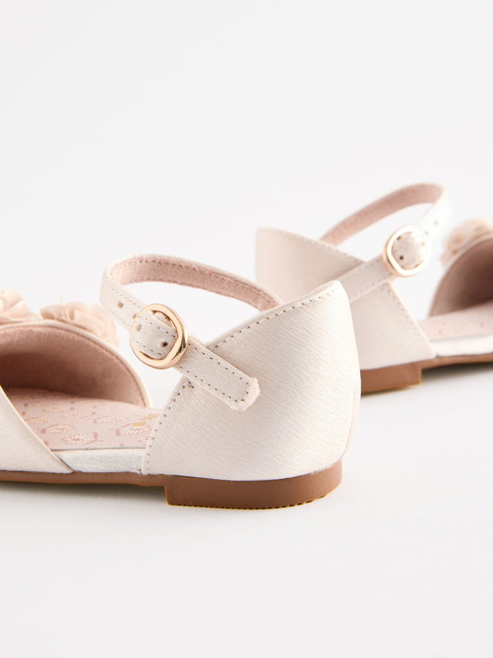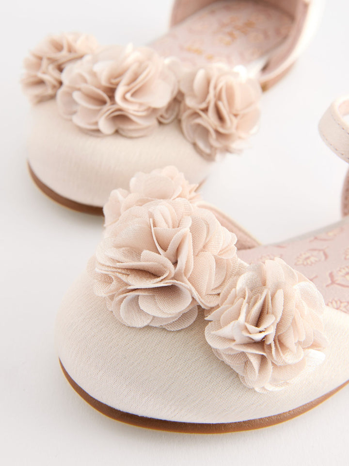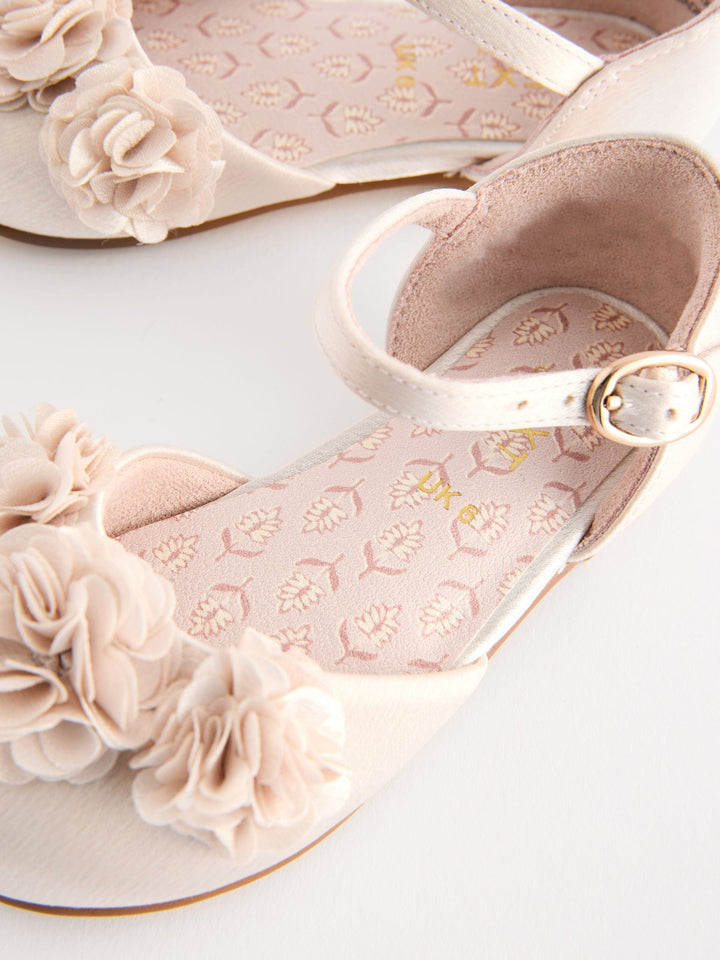 Ivory Satin Flower Girl Ankle Strap Corsage Occasion Shoes