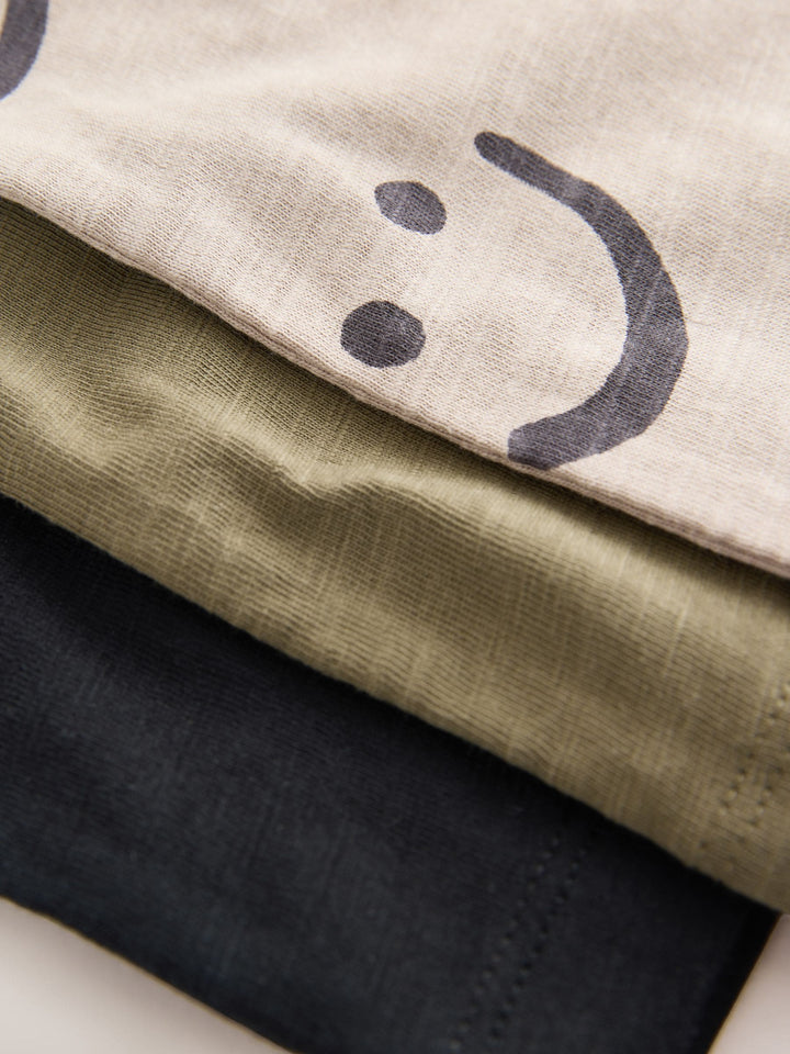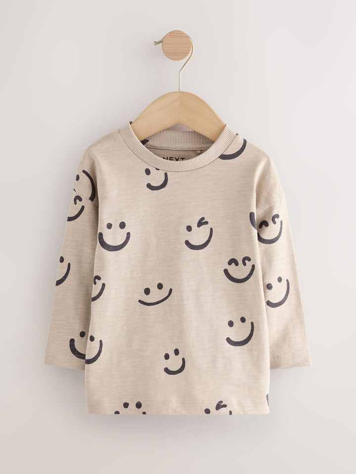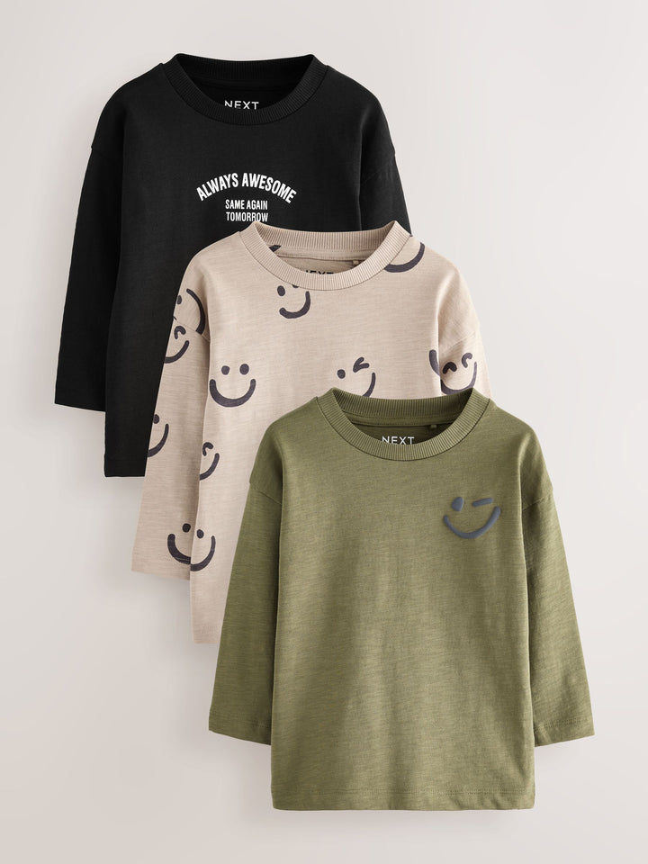 Khaki/Cream Smile Long Sleeve Animal Print Character T-Shirts 3 Pack (3mths-7yrs)
