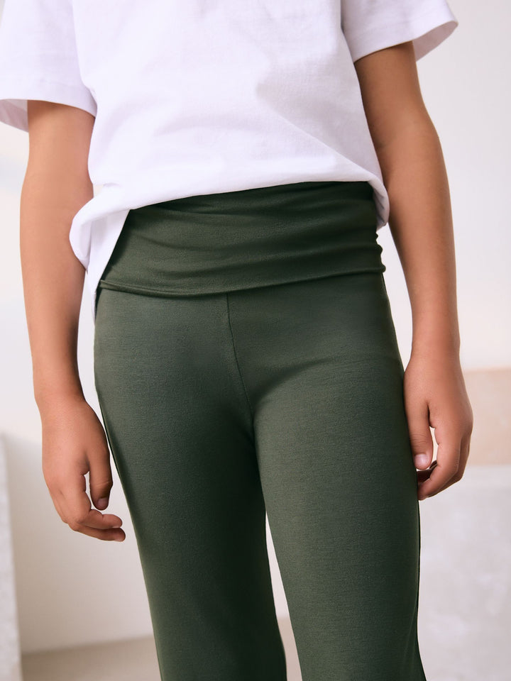 Khaki Green Fold Over Flare Leggings (3-16yrs)