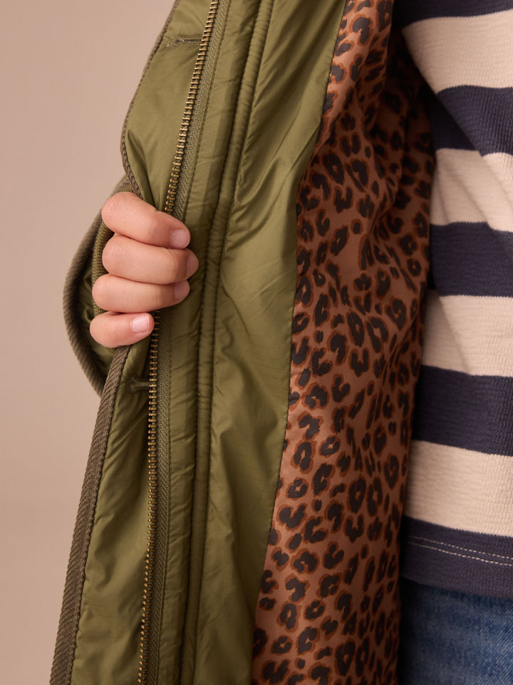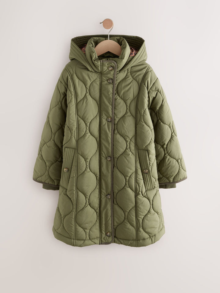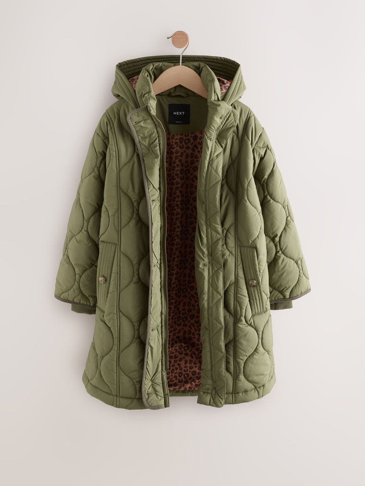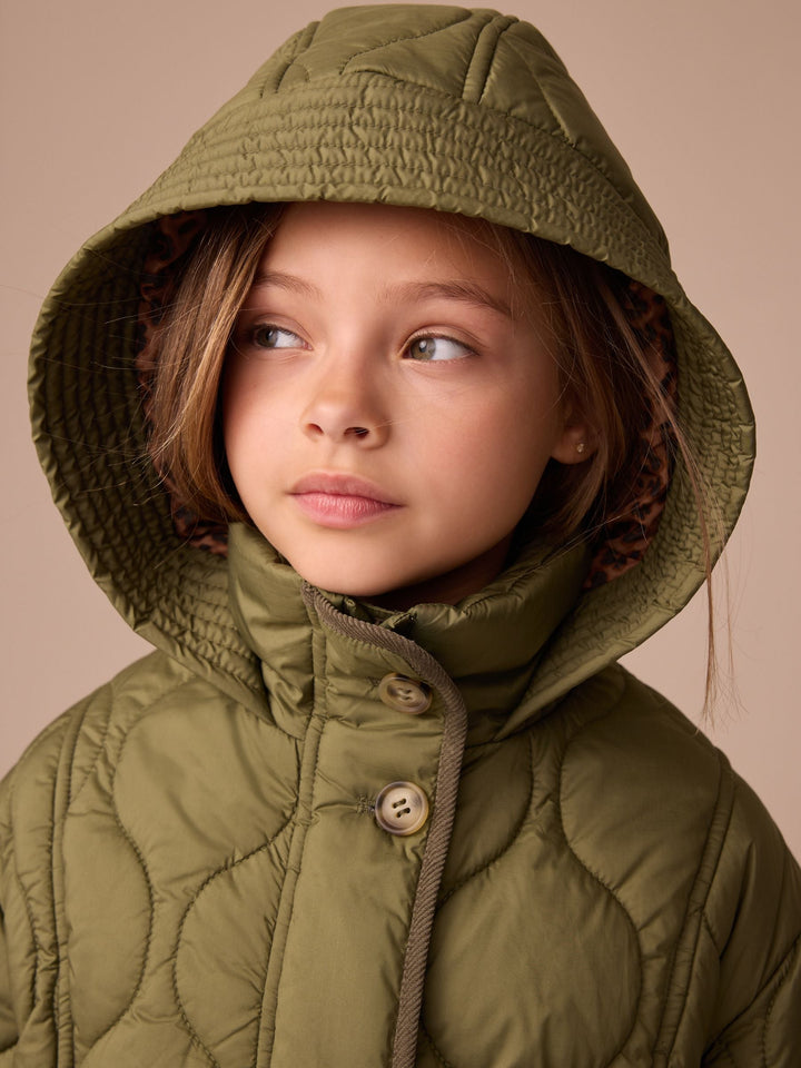 Khaki/Green Shower Resistant Heart Quilted Jacket (3-16yrs)