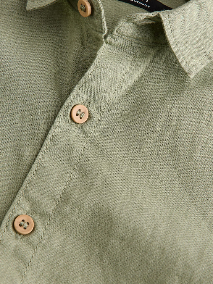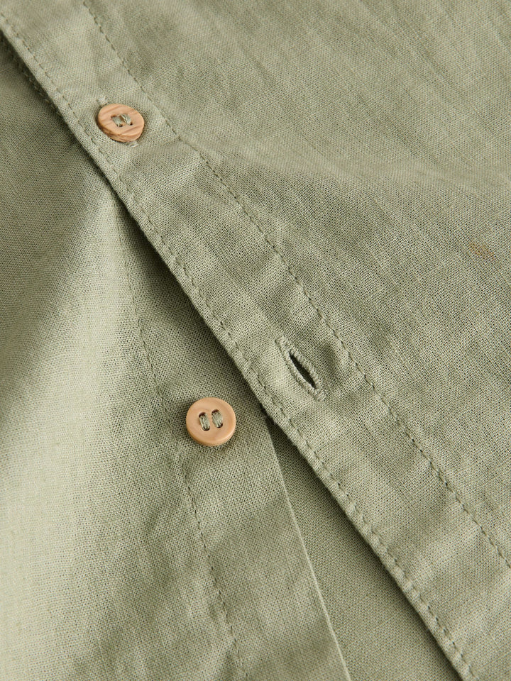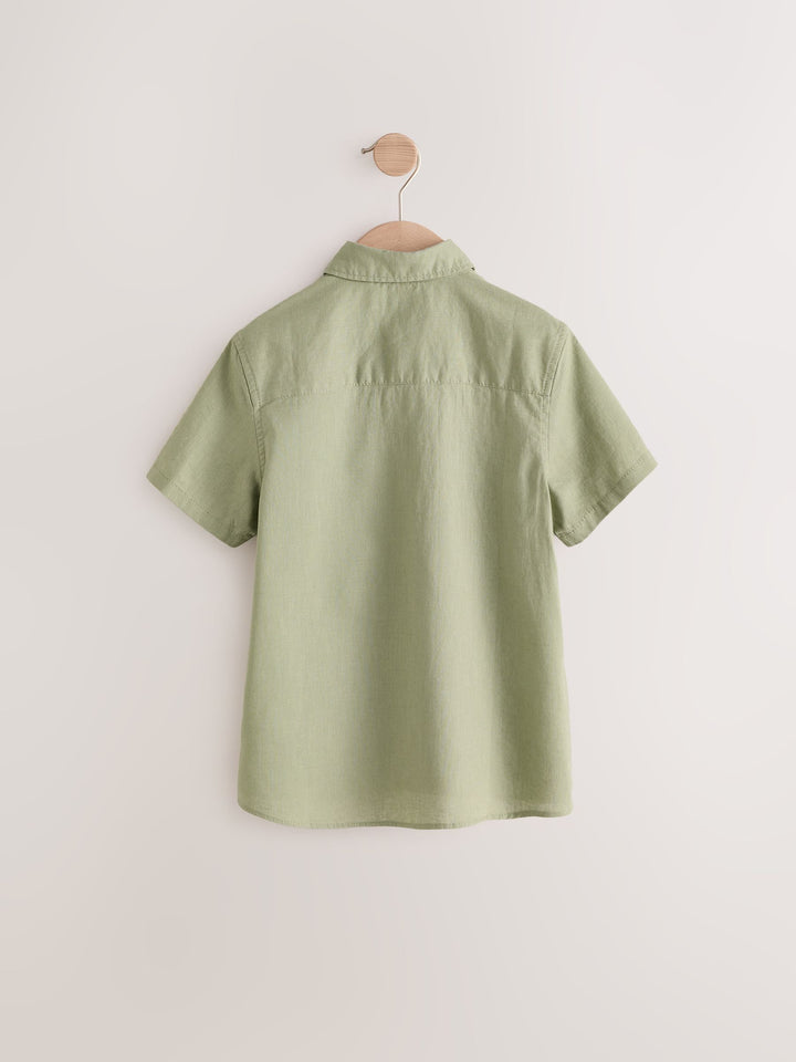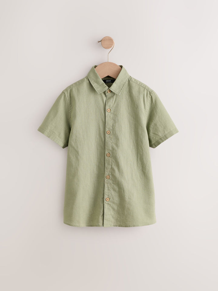 Khaki/Green Single Short Sleeves Linen Blend Shirt (3mths-16yrs)