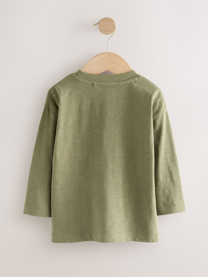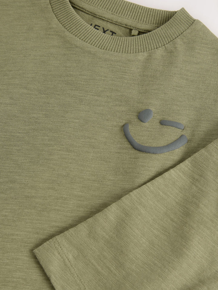 Khaki Green Smile Long Sleeves Semi Plain T-Shirt (3mths-7yrs)