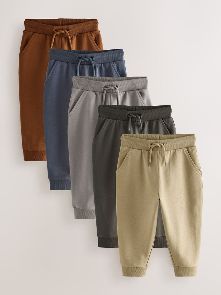 Khaki/Grey/Blue Regular Fit Joggers 5 Pack (3mths-7yrs)