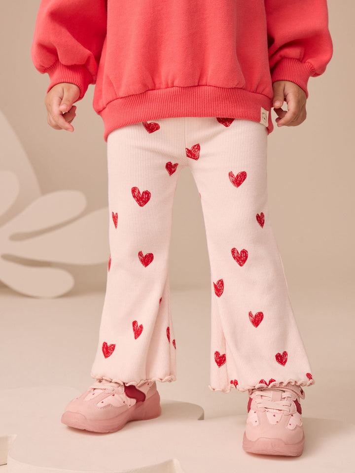 Light Pink Heart Rib Flare Leggings (3mths-7yrs)