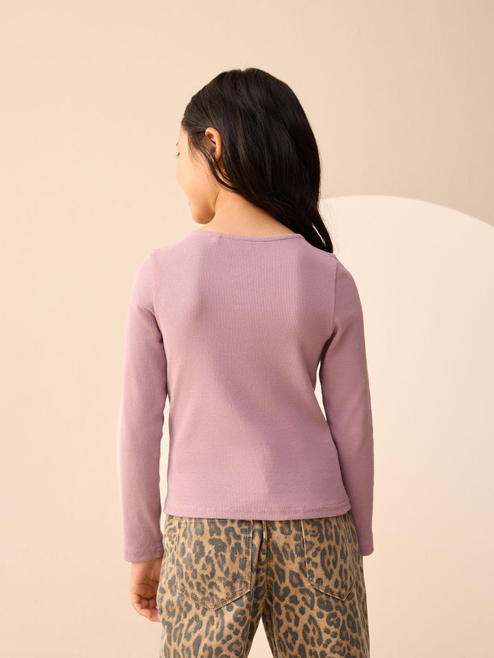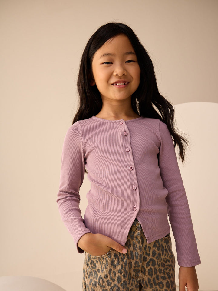 Lilac Purple Long Sleeve Ribbed Cardigan (3-16yrs)