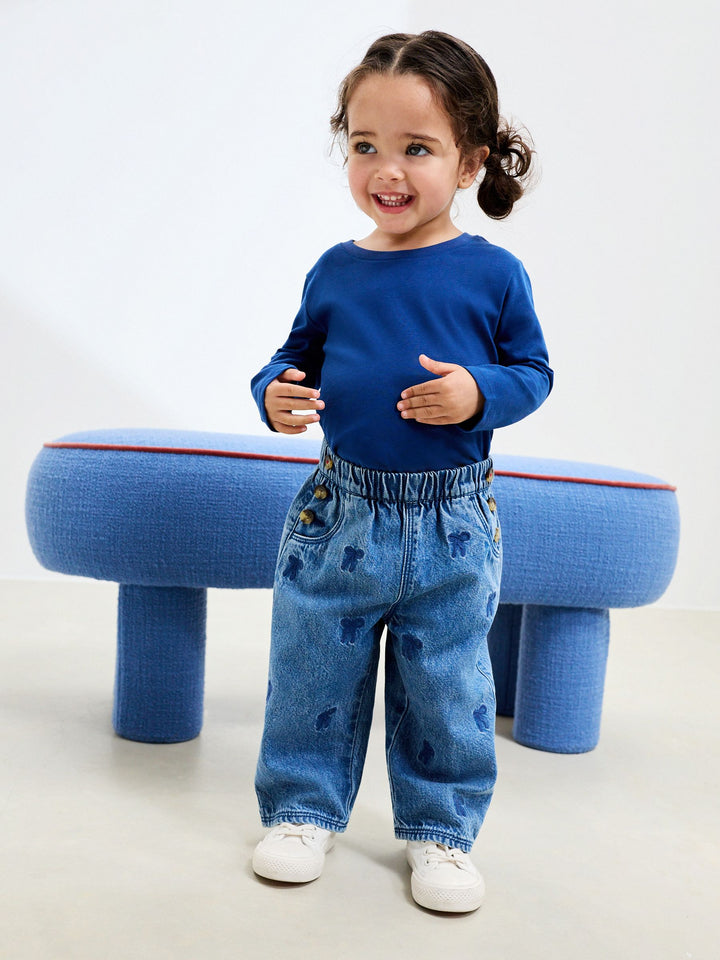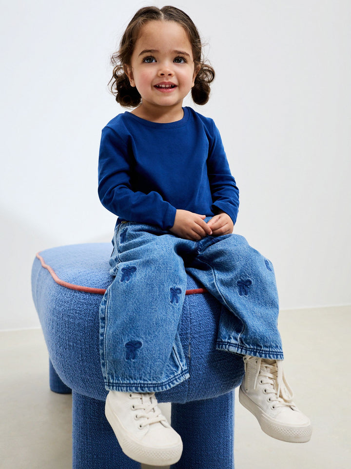 Mid Blue Denim Bow Embroidered Jeans (3mths-7yrs)