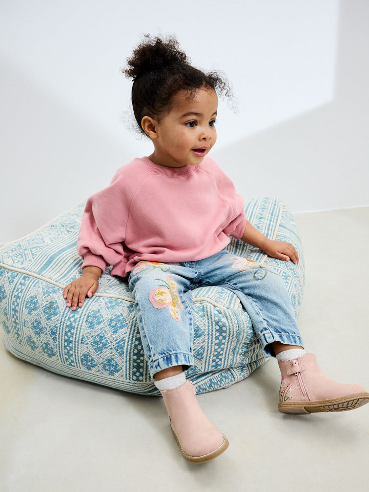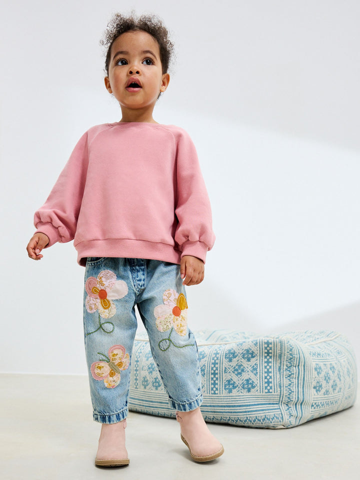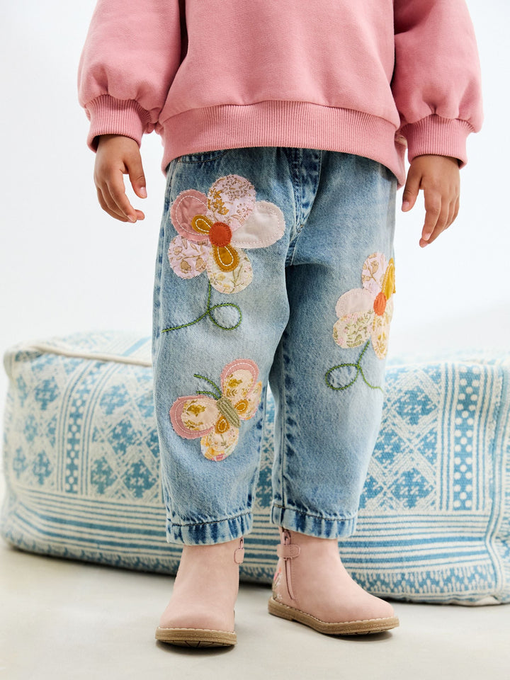 Mid Blue Denim Floral Appliqué Jeans (3mths-7yrs)