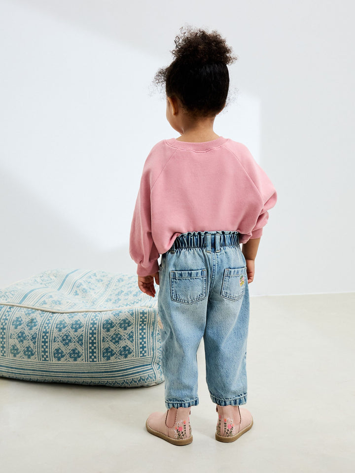 Stylish and comfortable, these mid-blue denim jeans are perfect for playtime. The fun floral appliqué design adds a playful touch, while the elasticated pull-on waist and inner adjusters ensure a comfortable and flexible fit. A fun and stylish choice for any casual occasion. Pull-on jean Denim Floral appliqué Pockets Inner adjustable waist 100% Cotton. Country of Origin: Bangladesh