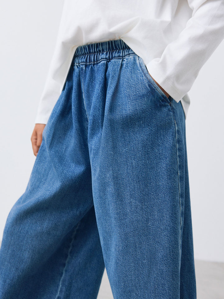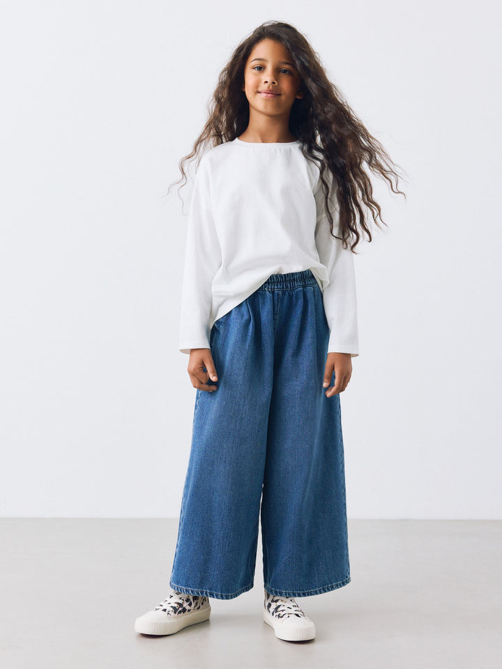 Mid Blue Pull On Wide Leg Jeans (6-16yrs)