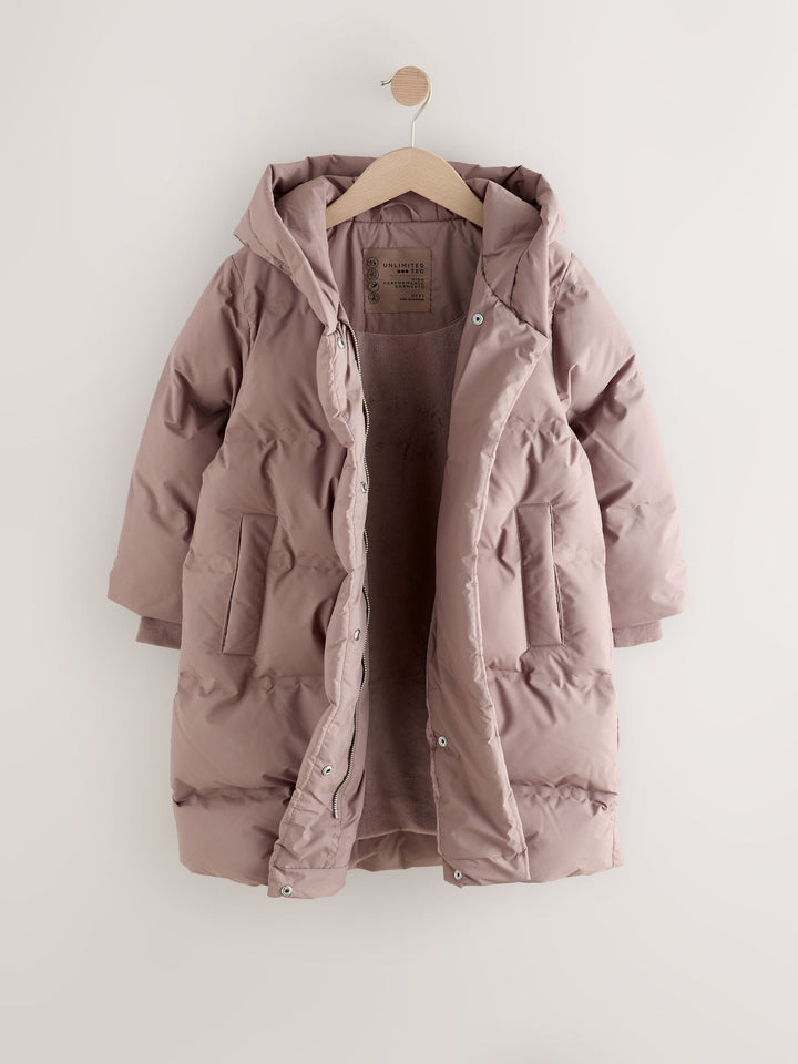 Ready for the coldest days, this waterproof mink brown padded coat is designed for ultimate warmth. The taped seams, cosy faux fur body lining, and fleece-lined pockets provide superior comfort and protection, while the storm cuffs keep the cold out for every adventure. Waterproof with taped seams Faux fur lining Fleece-lined pockets Storm cuffs Machine washable. Main 100% Recycled polyester. Lining 100% Recycled polyester. Wadding 100% Recycled polyester. Country of Origin: Myanmar