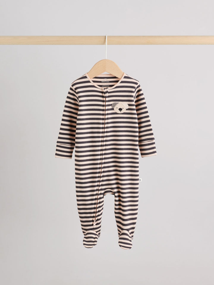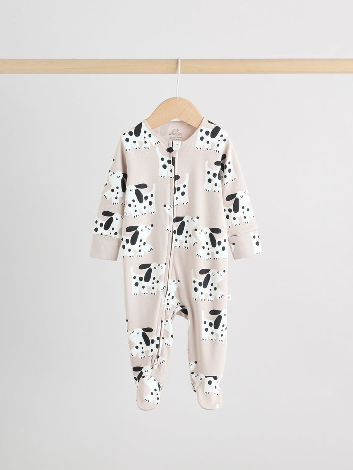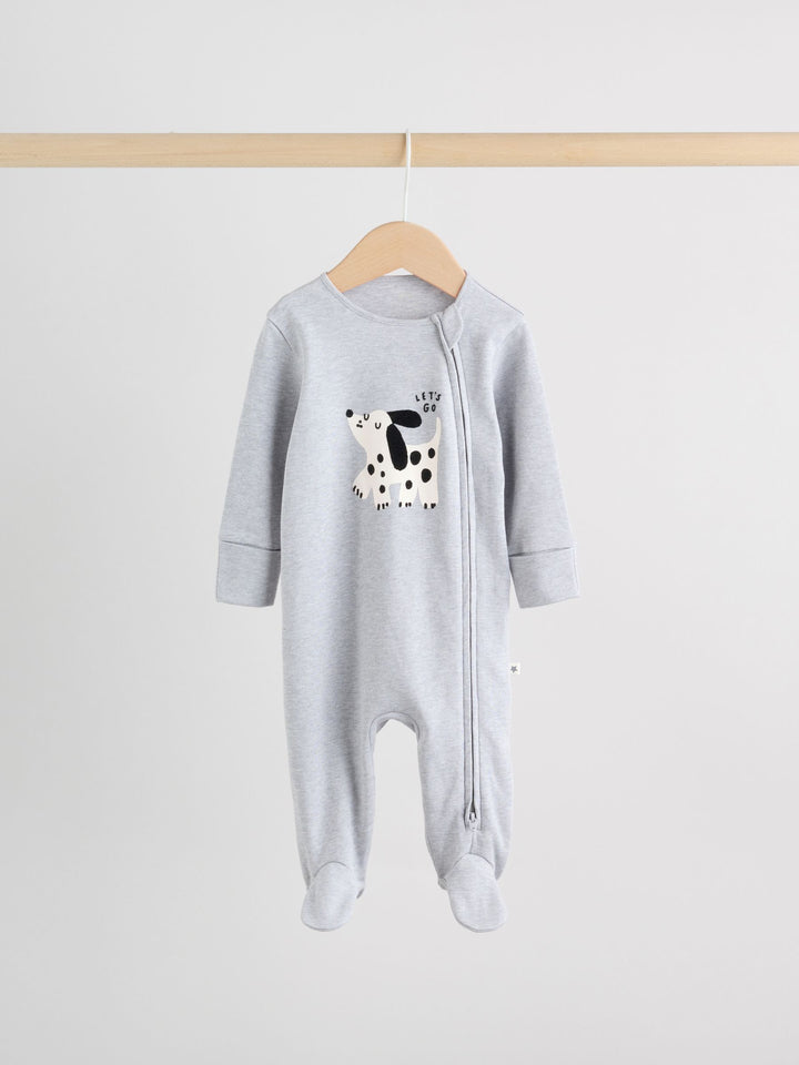 Monochrome Dog Baby Two Way Zip Sleepsuits 3 Pack (0-2yrs)