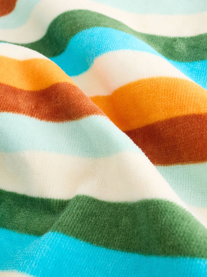 The perfect companion for the beach or swimming, this multi-coloured wearable towel has a poncho shape with a set-in hood and an striped print, a kangaroo pocket and a pure-cotton fabric with an absorbent texture. 100% cotton Poncho shape Set-in hood Machine washable. 100% Cotton. Country of Origin: China