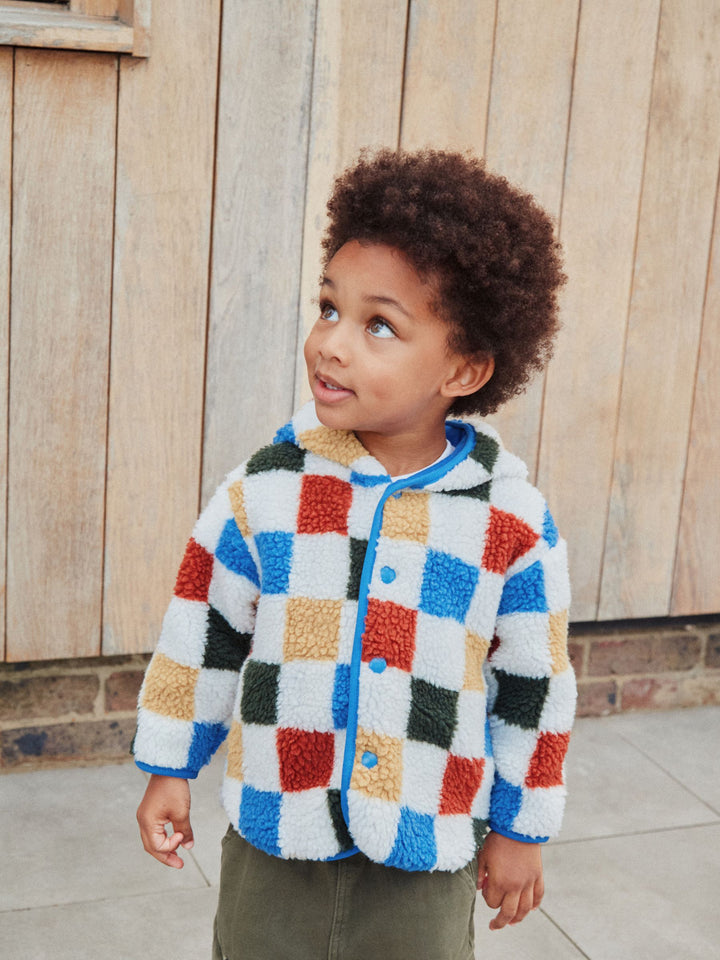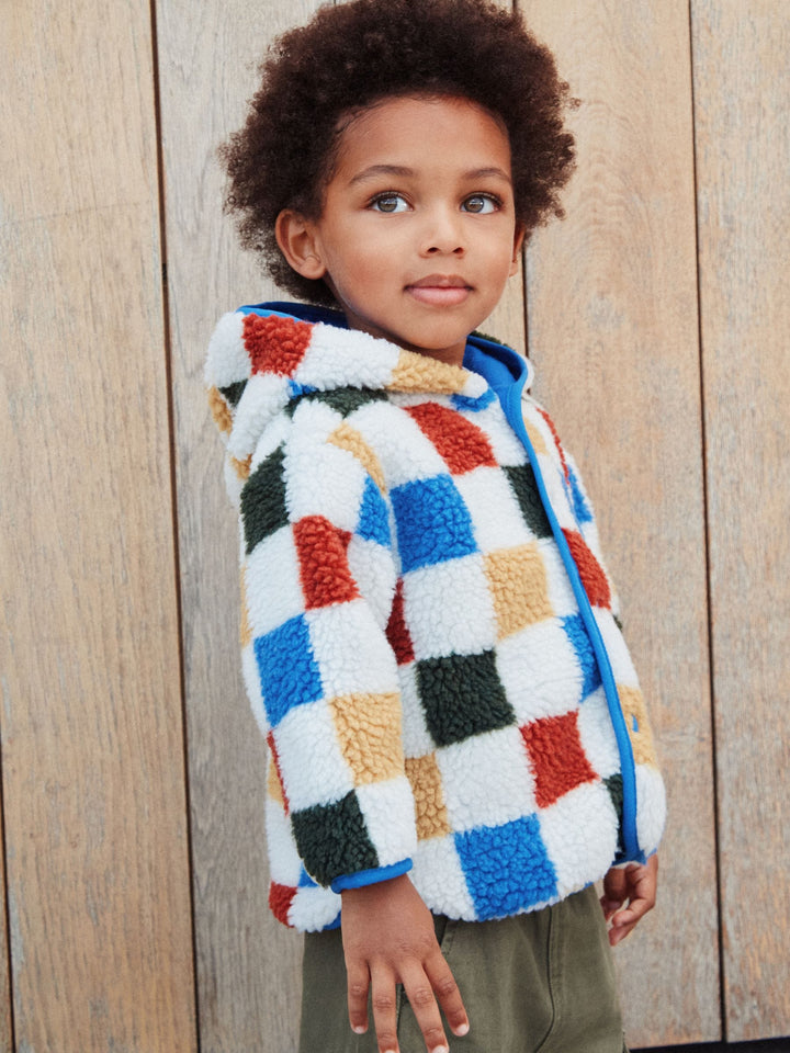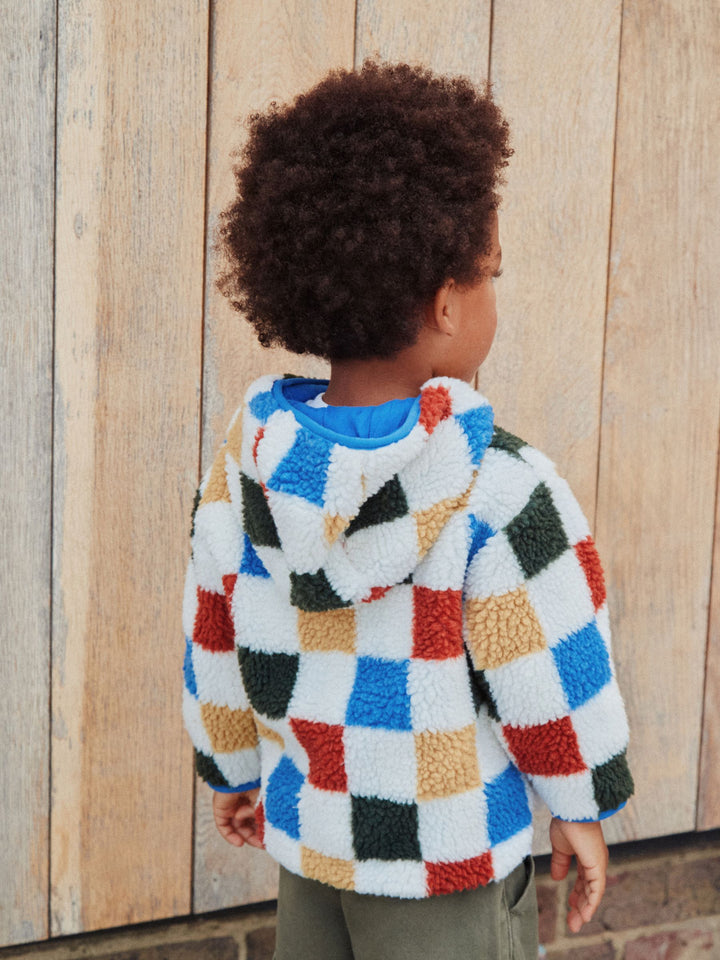Multi Checkerboard Hooded Fleece Zip Through Jacket (3mths-7yrs)