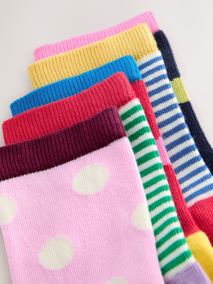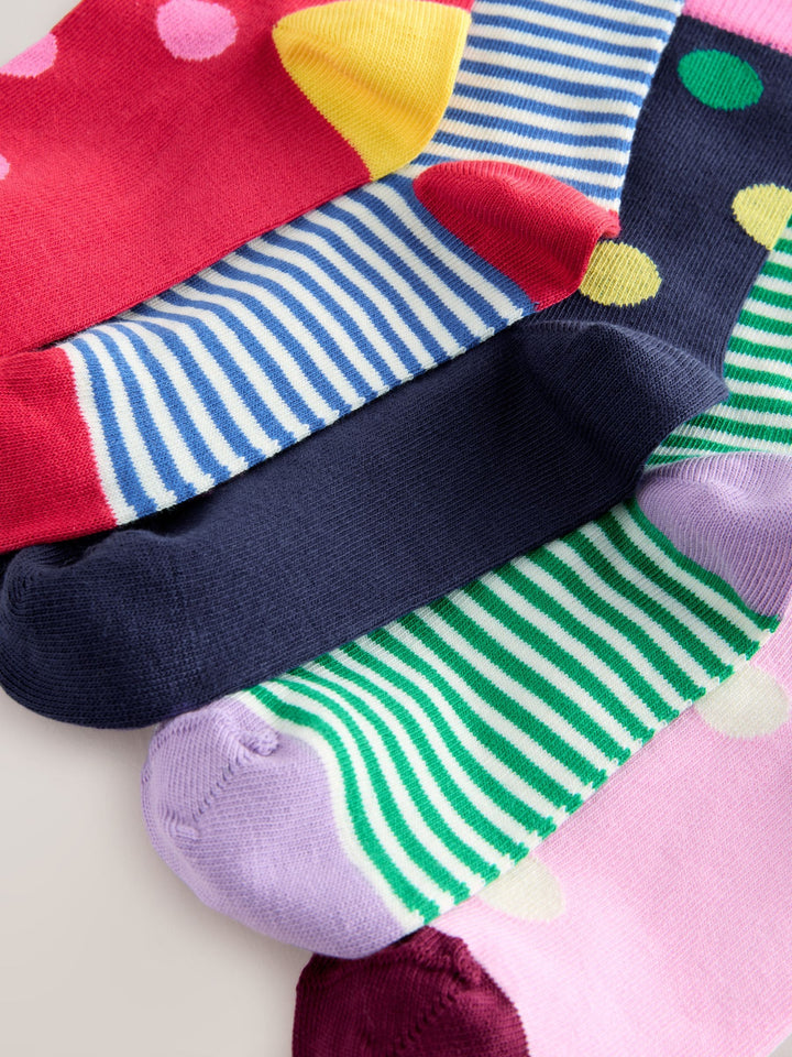 Multi Colour Cotton Rich Stripe and Spot Ankle Socks 5 Pack