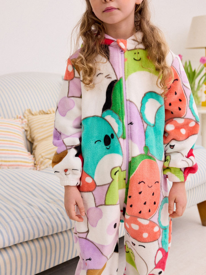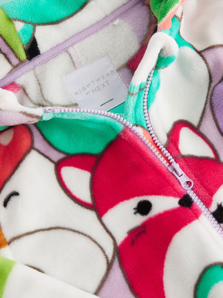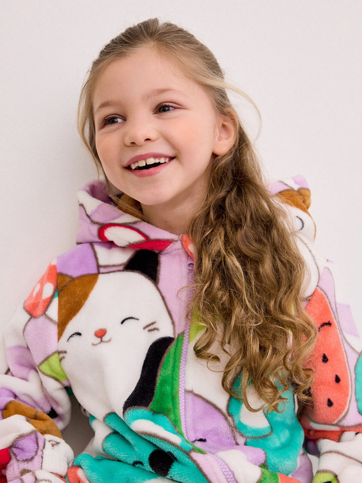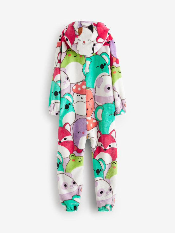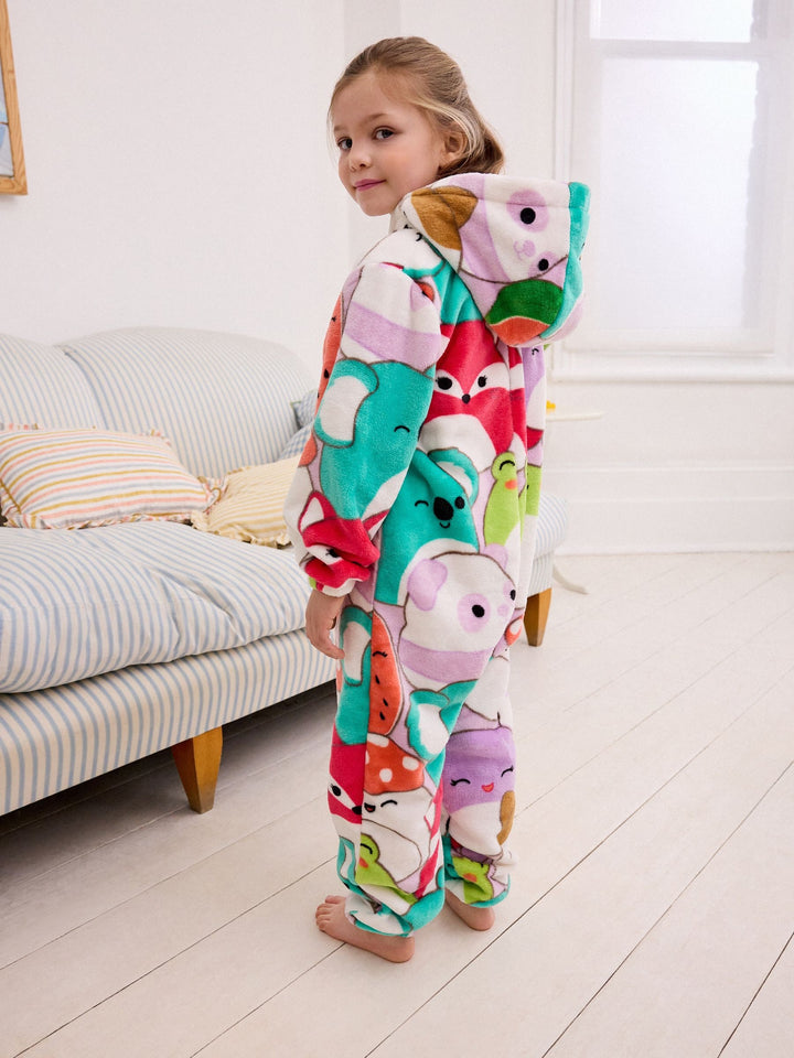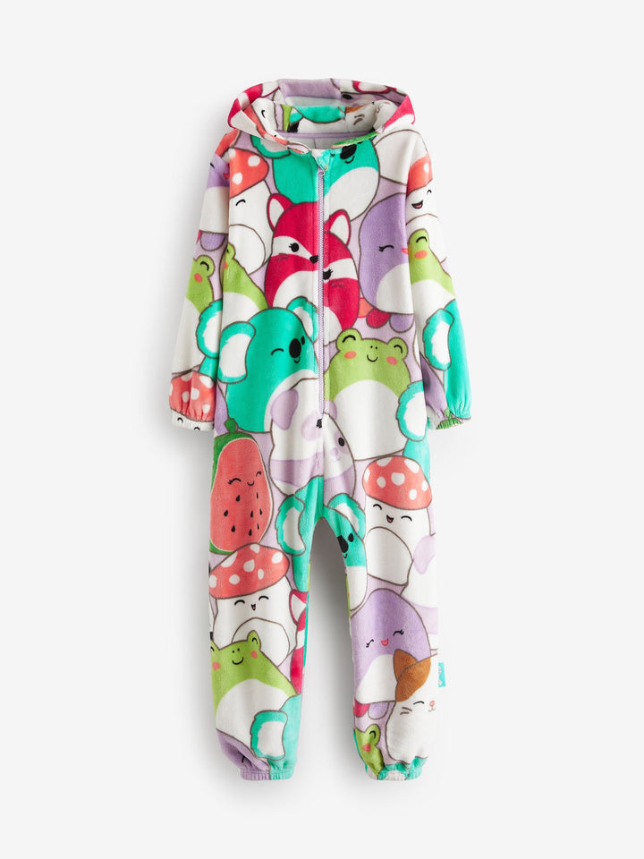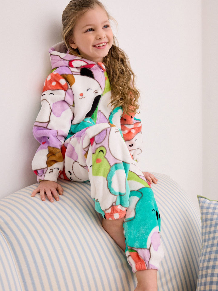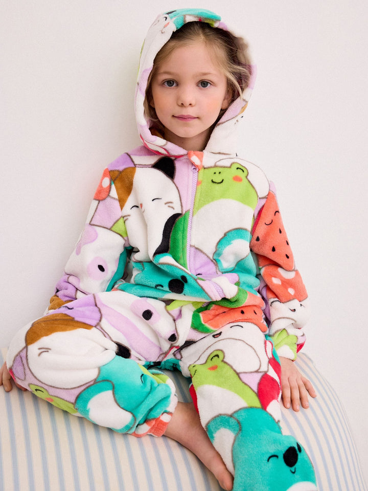 Let them join the Squishmallows squad and get snuggled up in this supersoft fleece all-in-one. This licensed Squishmallows all-in-one features vibrant and lovable characters in an all-over print with a cosy hood and zip front. Squishmallows license all-in-one Supersoft fleece Cosy hood Zip front Machine washable. 75% Recycled polyester, 25% Polyester. Country of Origin: China Warning: Keep away from fire and flames.