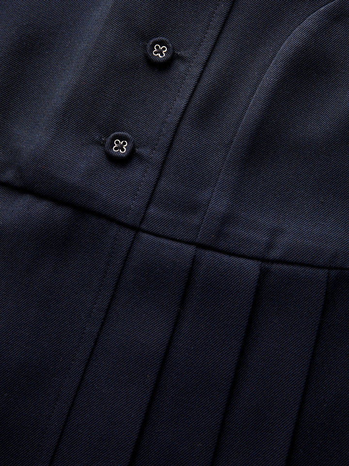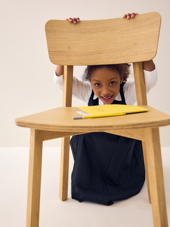 This blue school pinafore features button detail at the front with functional zip fastening at the back. Designed with a longer-length smart pleated skirt and asymmetric bodice shape, this pinafore is coated with a stain-resistant Teflon® finish to keep it cleaner for longer. Key Features: Easy Iron fabric - Handy easy-iron finish Teflon® Technology - Teflon EcoElite™ is a non-fluorinated plant-based finish that repels water and water-based stains for easy cleaning and quick drying. Visit www.teflon.com/ecoelite for more information Machine Washable Pleated skirt Longer Length Asymmetric button detail with zip fastening at the back Machine washable. 65% Recycled polyester, 35% LENZING™ ECOVERO™ Viscose. Country of Origin: Sri Lanka
