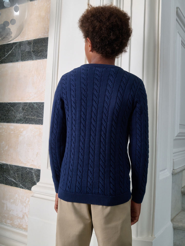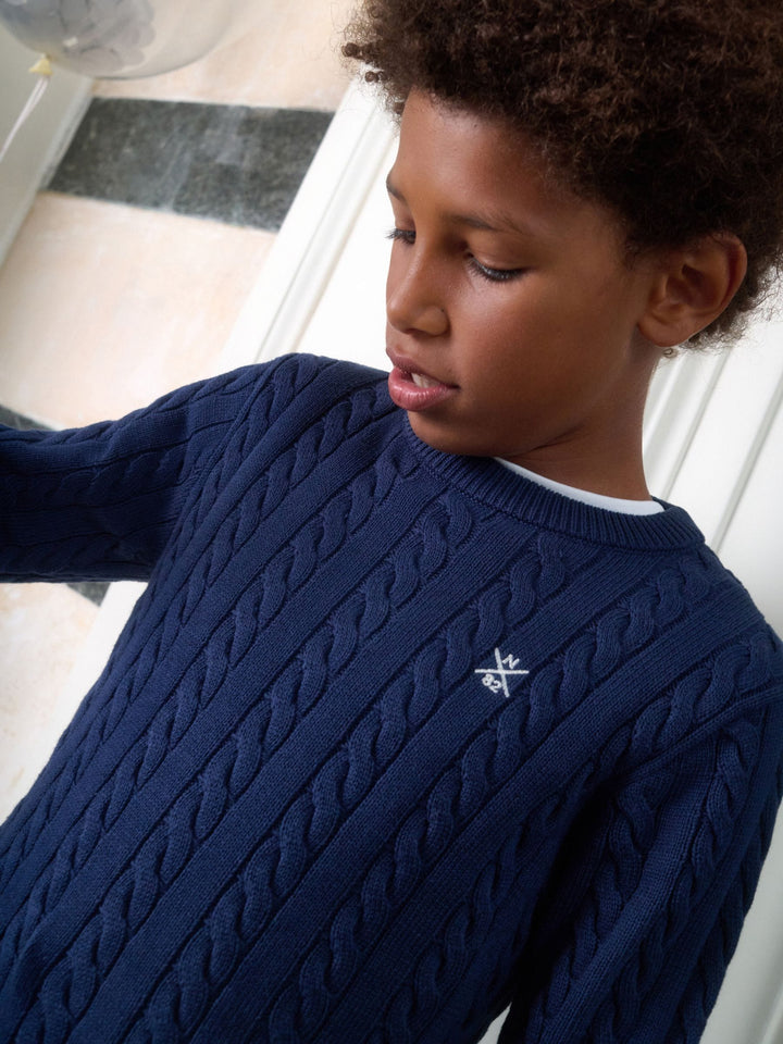 Navy Blue Cable Knit Crew Neck Jumper (3-16yrs)