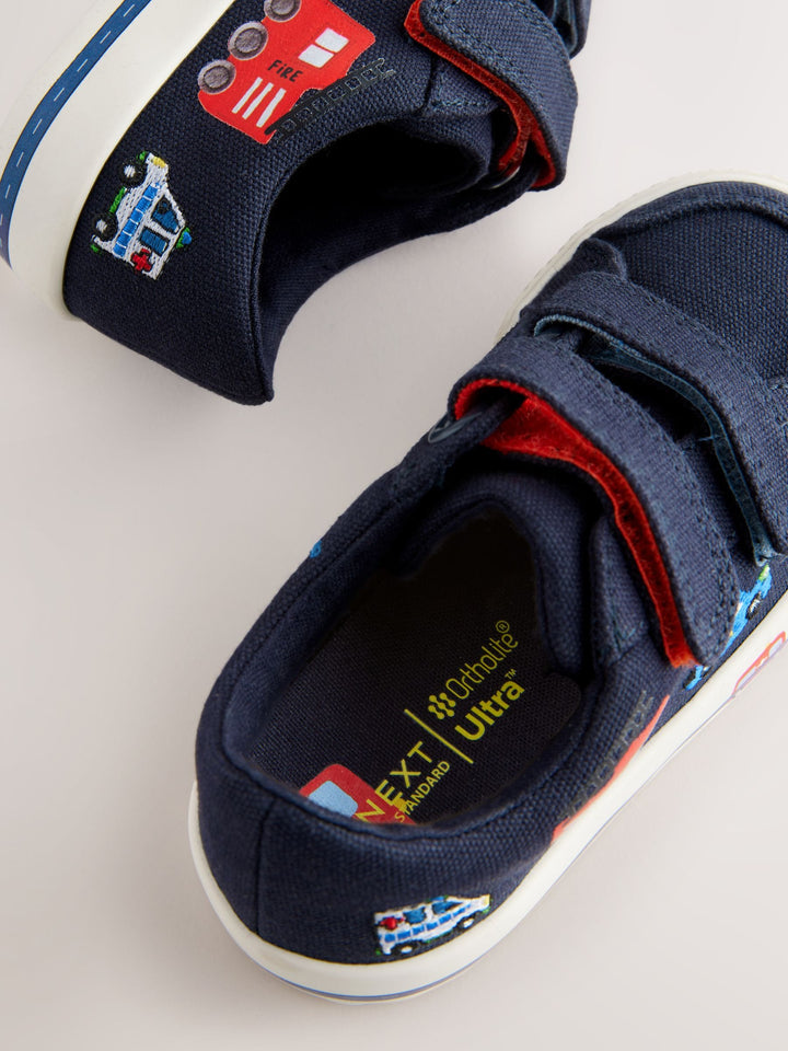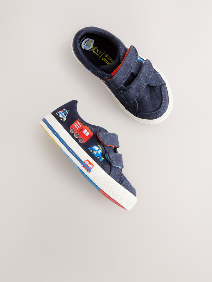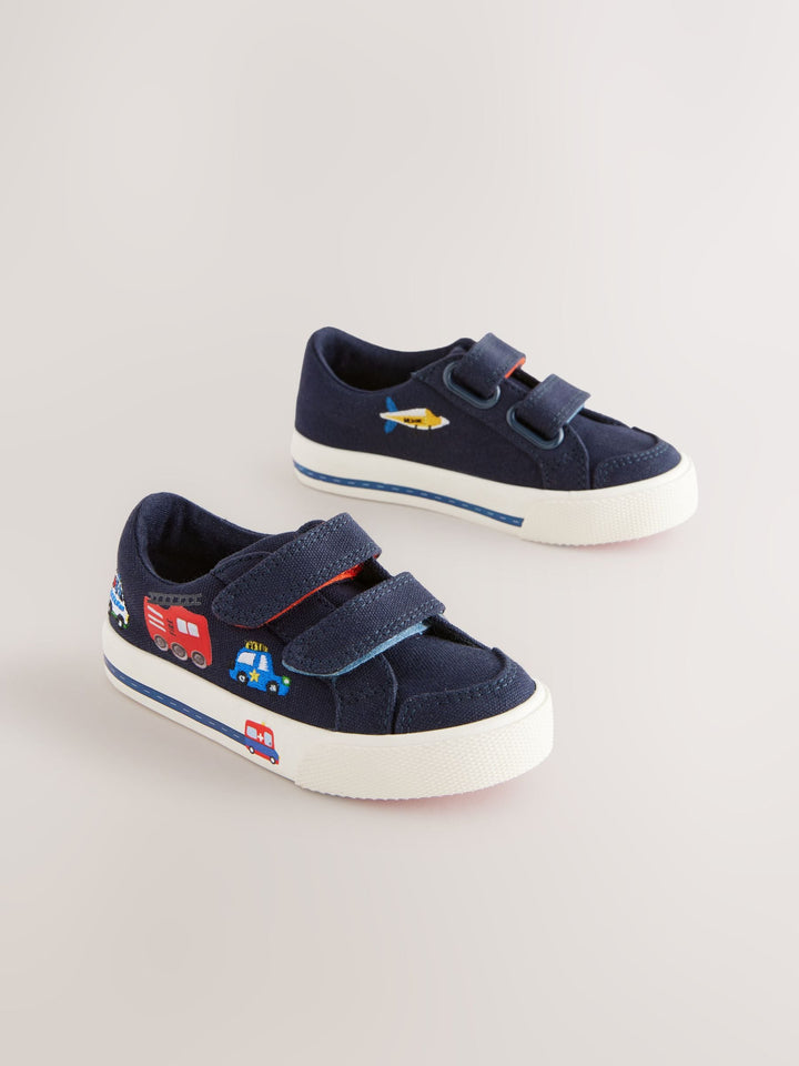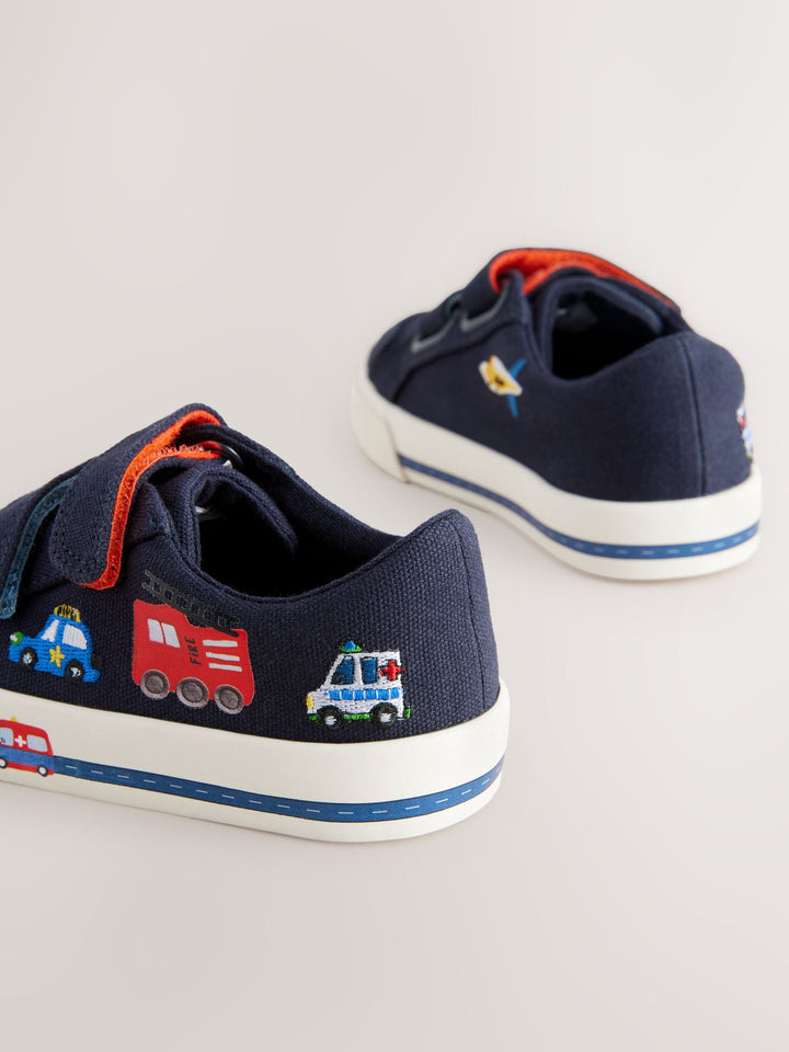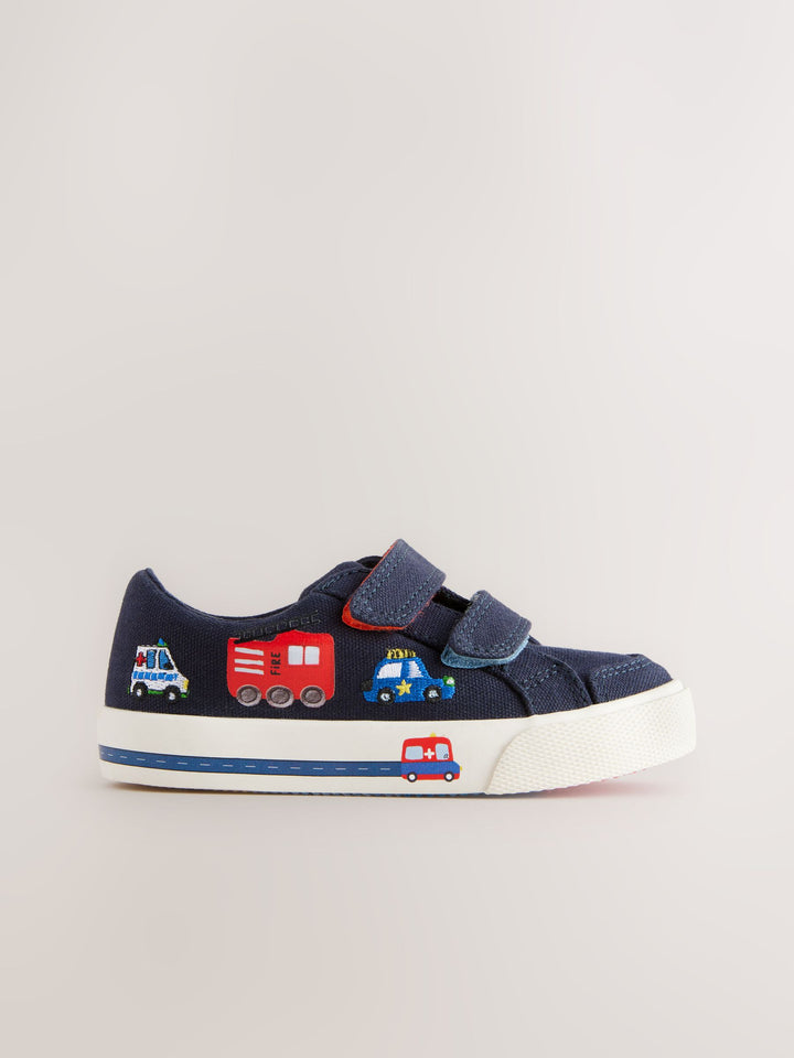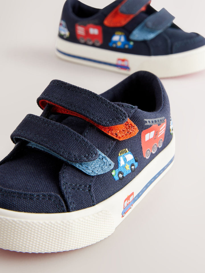 Navy Blue Cars Standard Fit (F) Two Strap Touch Fastening Trainers