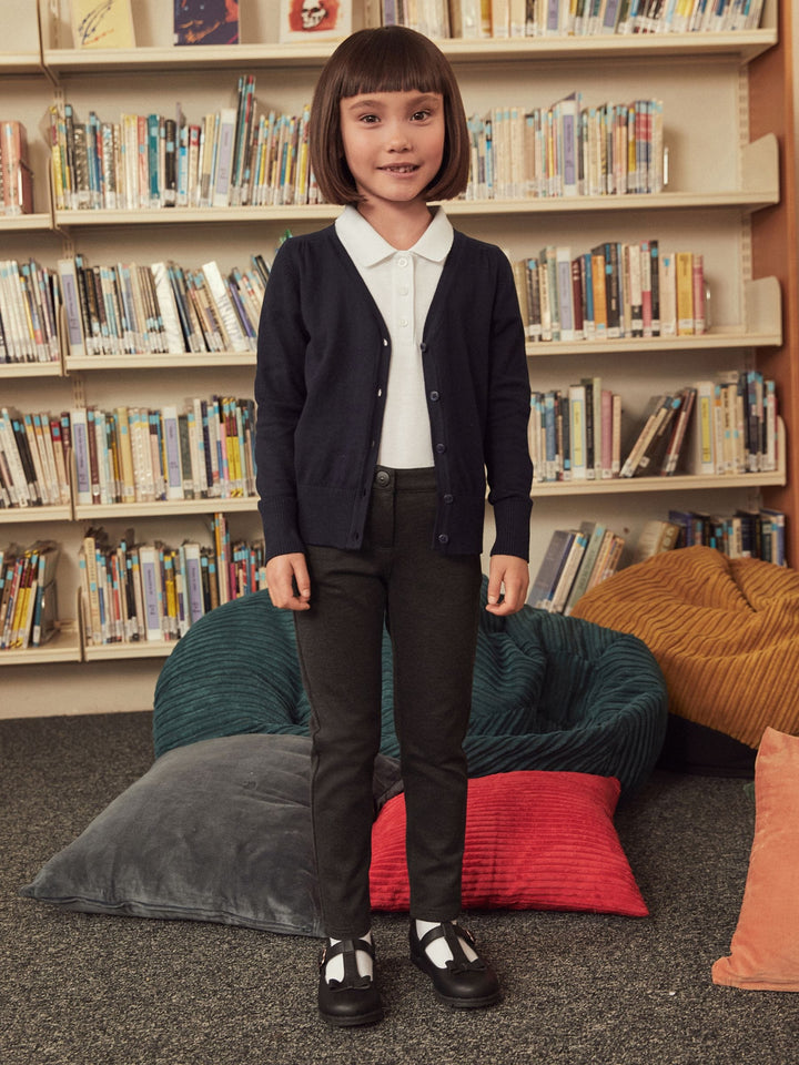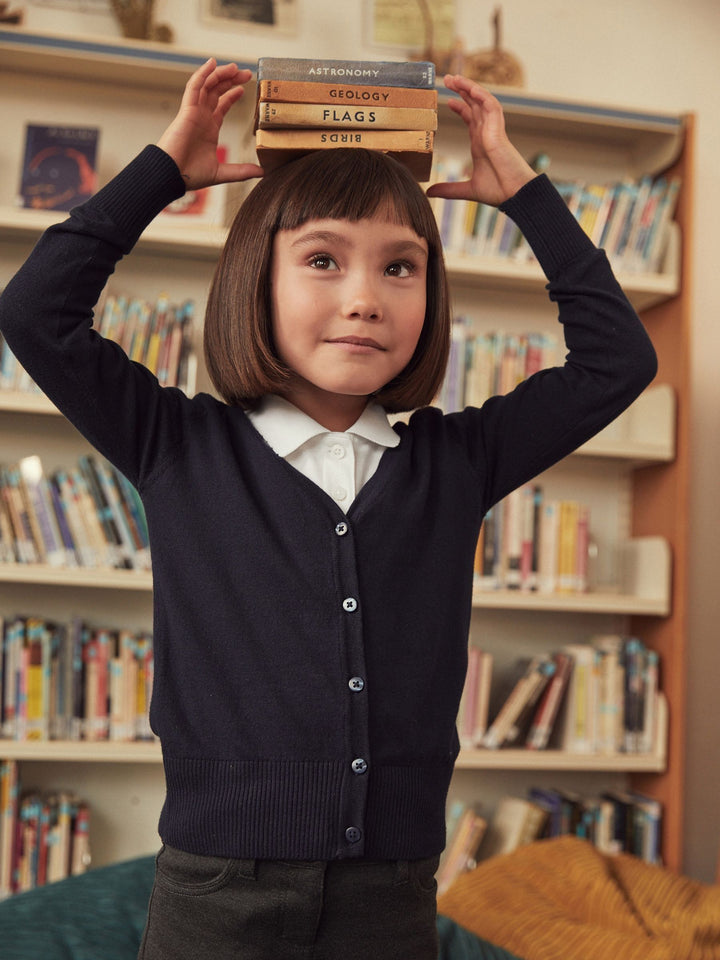 Layering perfection, this navy blue V-neck cardigan is made from a rich-cotton blend for ultimate comfort and breathability throughout the hectic school day – an all-year-round staple. Lasting Colour - Lasting colour properties to ensure colours stay vibrant and bright wash after wash. Cotton Rich - Cotton rich blend for ultimate comfort and breathability. Button-through V-neck style Machine washable Machine washable. 80% Cotton, 20% Nylon. Country of Origin: Bangladesh