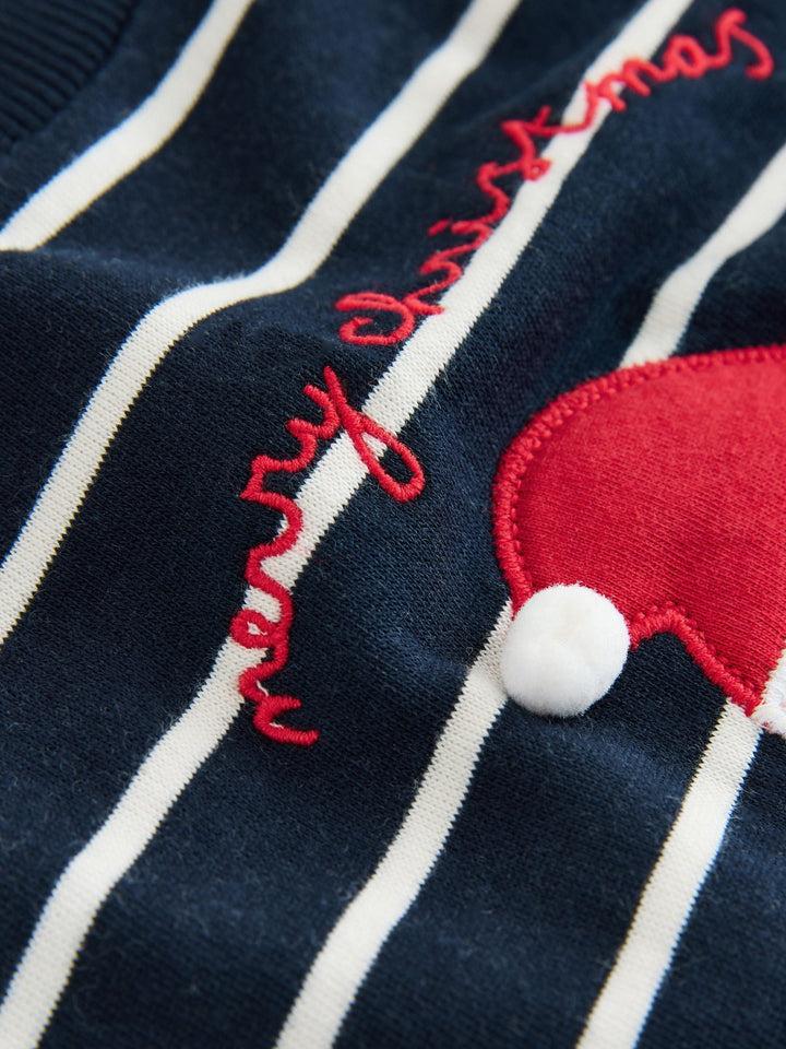 Navy Blue/Ecru Stripe Christmas Crew Neck Jersey Sweatshirt (3mths-7yrs)
