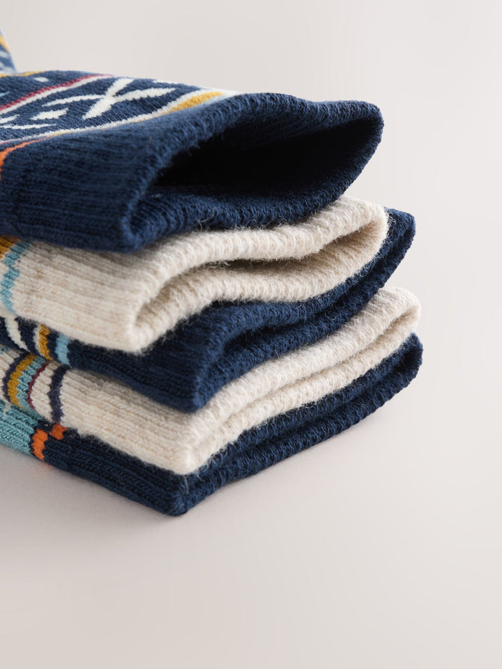 Navy Blue Fairisle Cosy Terry Cotton Rich Socks 5 Pack