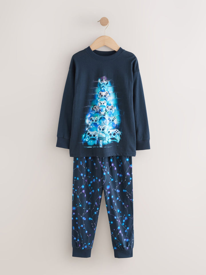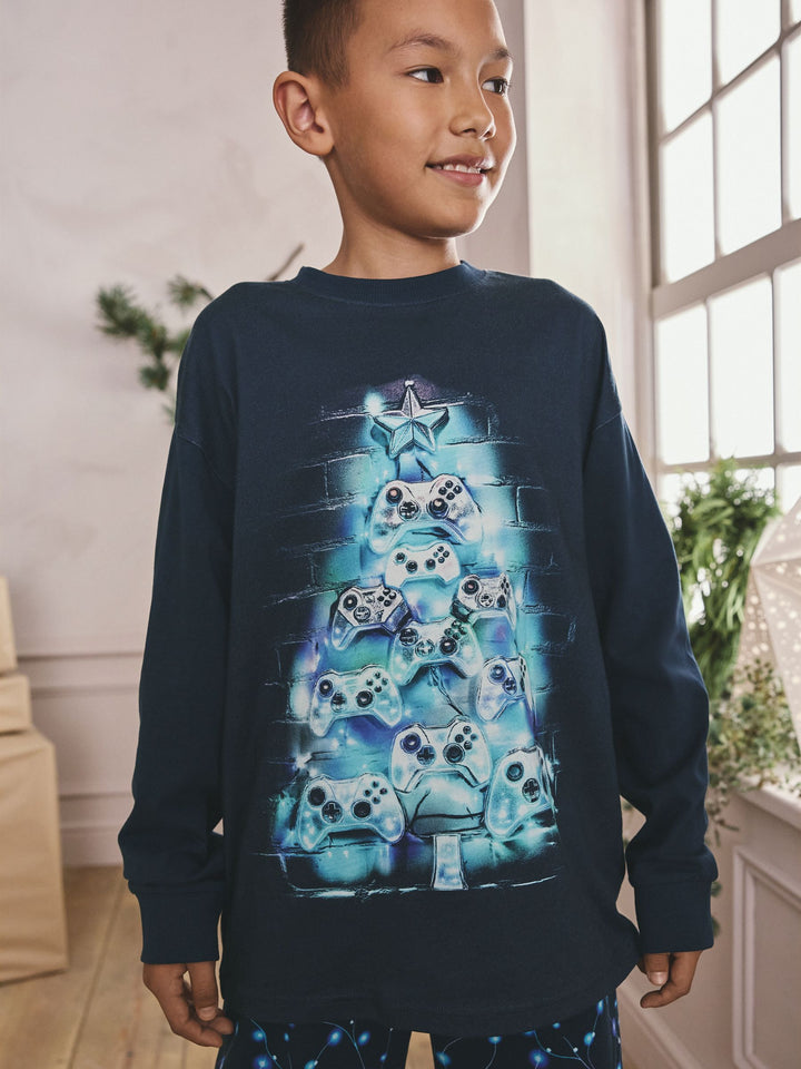 Navy/Blue Gamer Tree Single Christmas Pyjamas (5-16yrs)