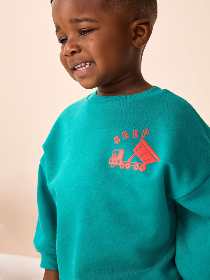 Navy Blue / Green Transport Printed Sweatshirt And Joggers Set 2 Pack (3mths-7yrs)