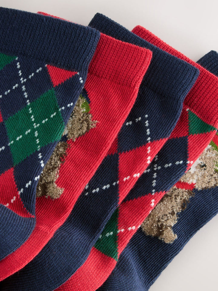 Navy Blue/Red Argyle Dog Christmas Cotton Rich Socks 5 Pack