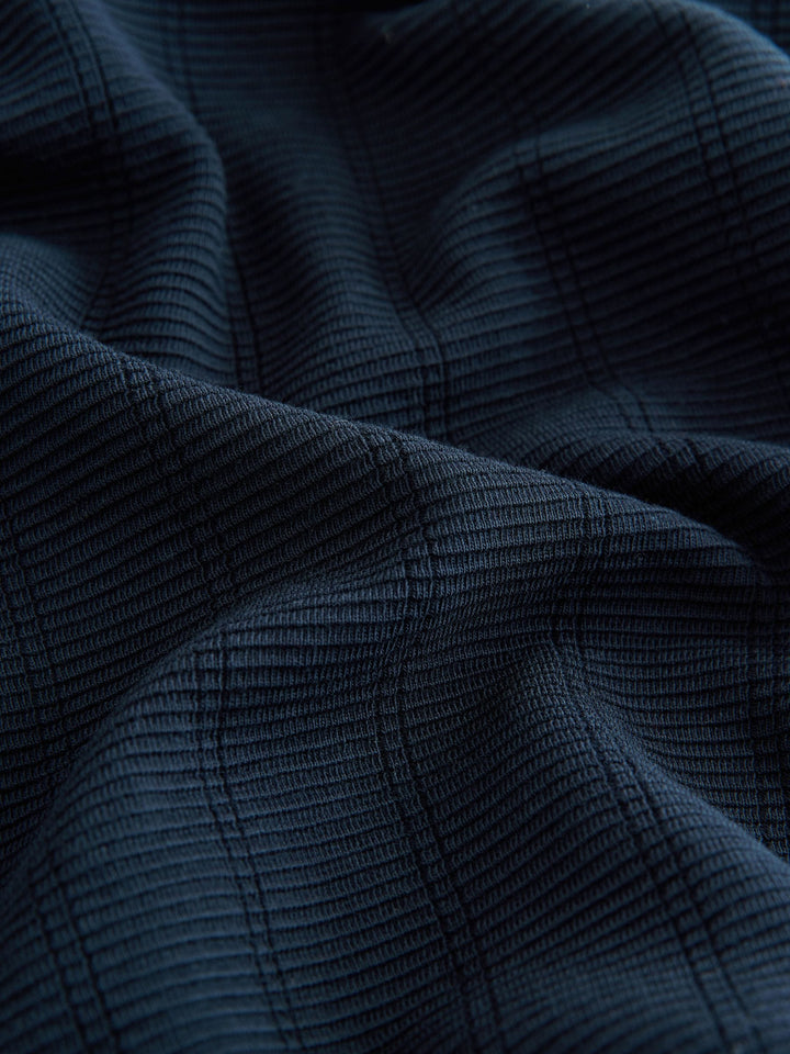 Navy Blue Zip Neck Textured Long Sleeve Polo Shirt (3-16yrs)