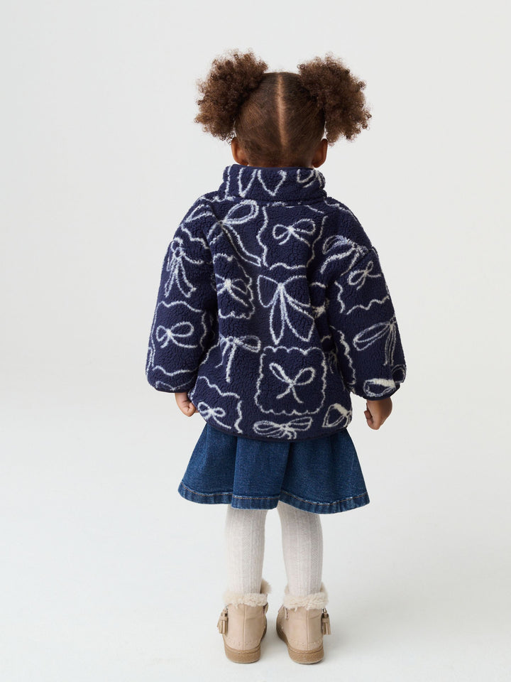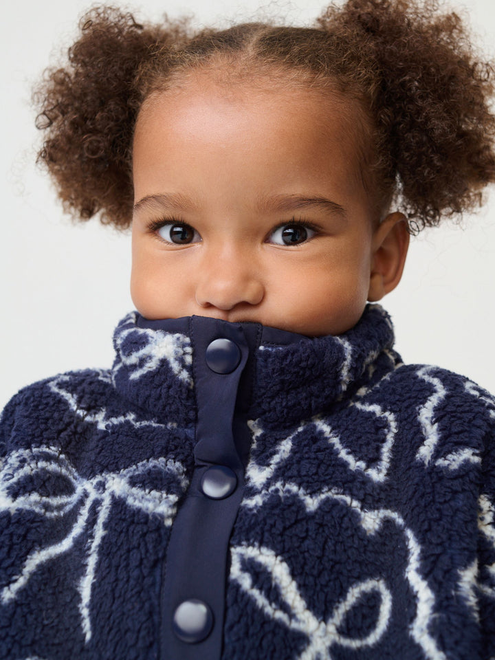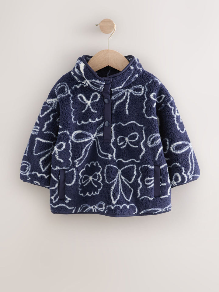 Navy Bow Half Popper Fleece (3mths-7yrs)