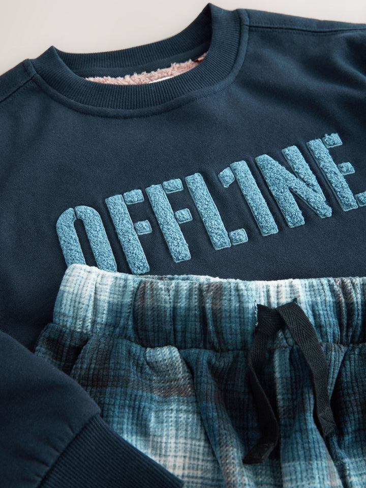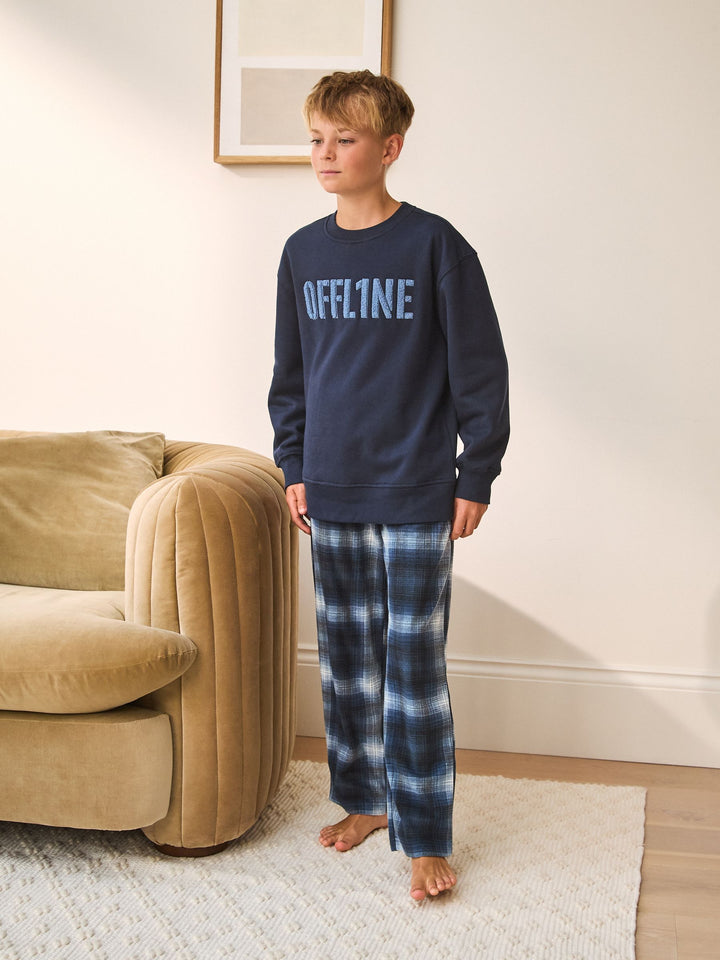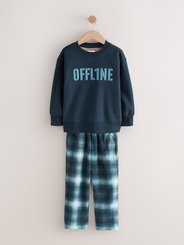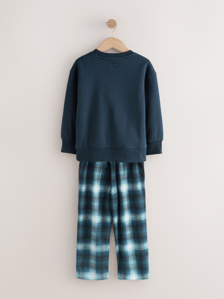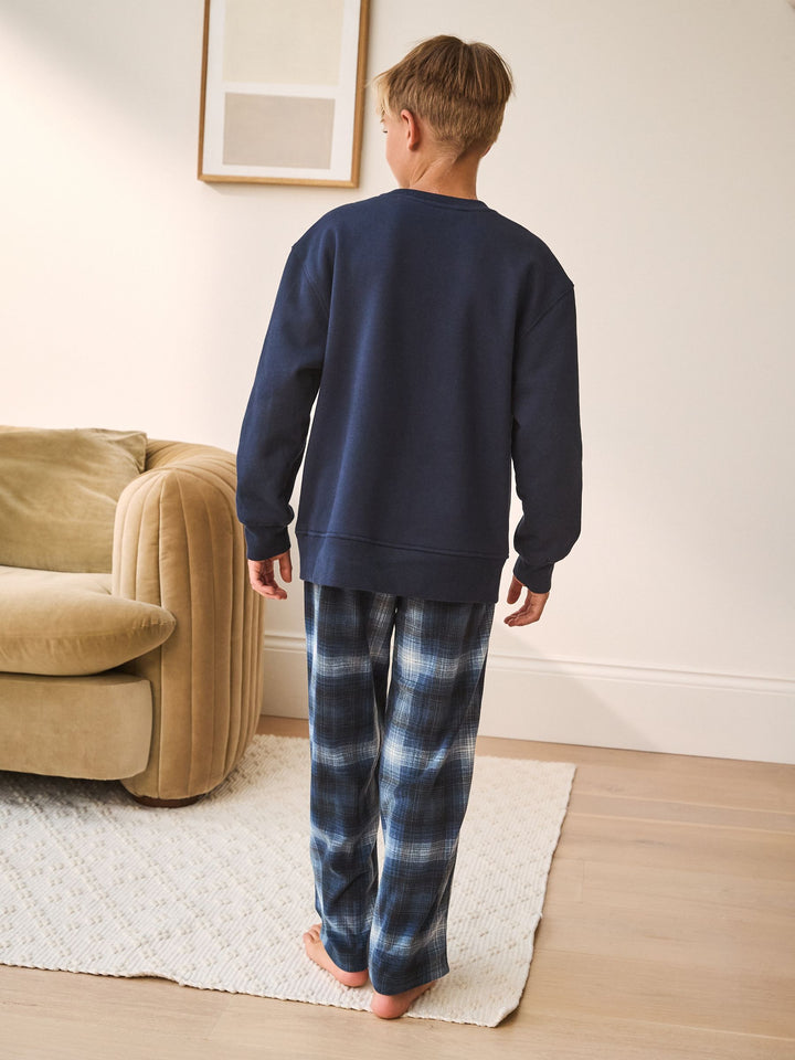 Navy Check Single Cosy Fleece Pyjamas (3-16yrs)