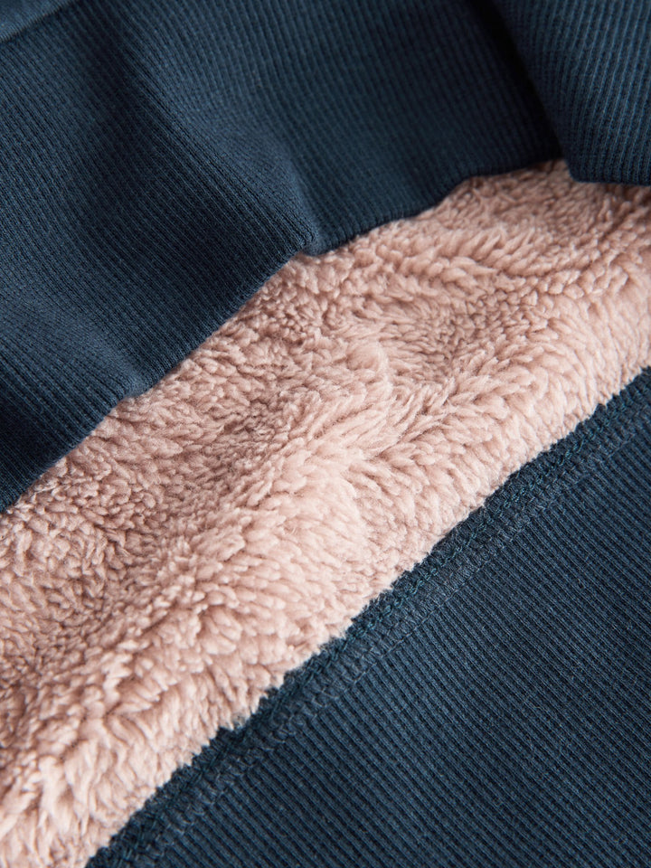 Pyjama Top Main 100% Cotton. Inner 100% Recycled polyester. Pyjama Bottom 100% Recycled polyester. Country of Origin: China Warning: Keep away from fire and flames.