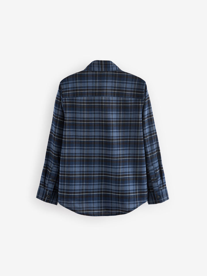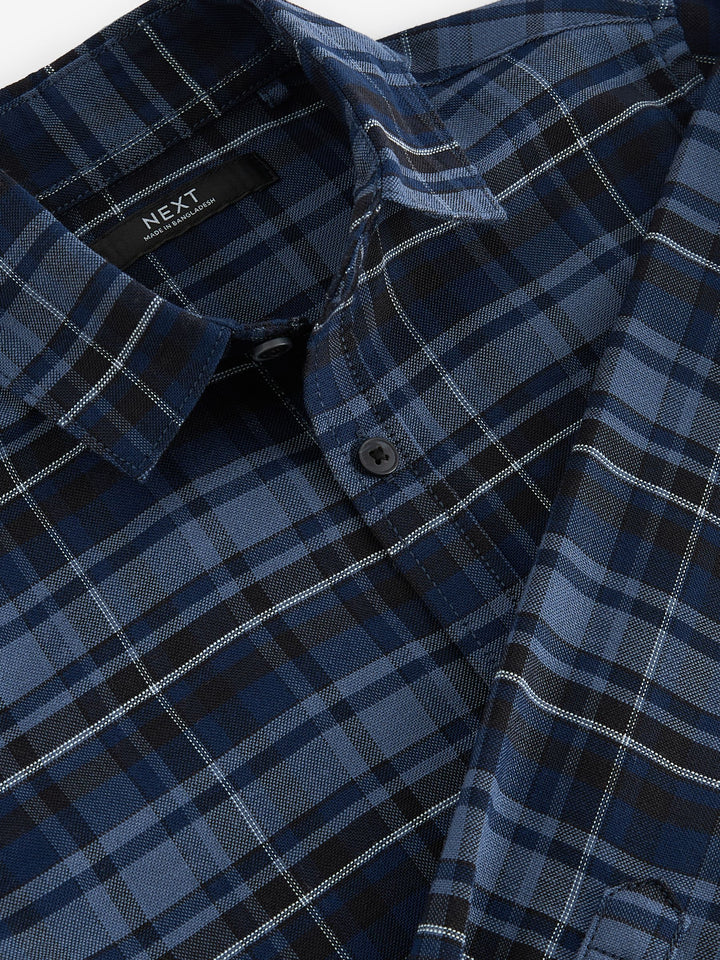Taking inspiration from our menswear collection, this navy check shirt is made with a cotton-rich construction and elastane for comfort. The button-up fastening leads to a smart button-through collar finished with an embroidered chest logo. Long sleeve Slight stretch Button-up fastening Button-through collar 60% Cotton, 40% Polyester. Country of Origin: Bangladesh