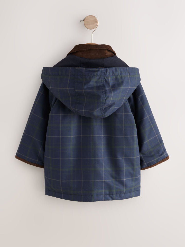 Navy Hooded Cord Collar Shower Resistant Coat (3mths-7yrs)