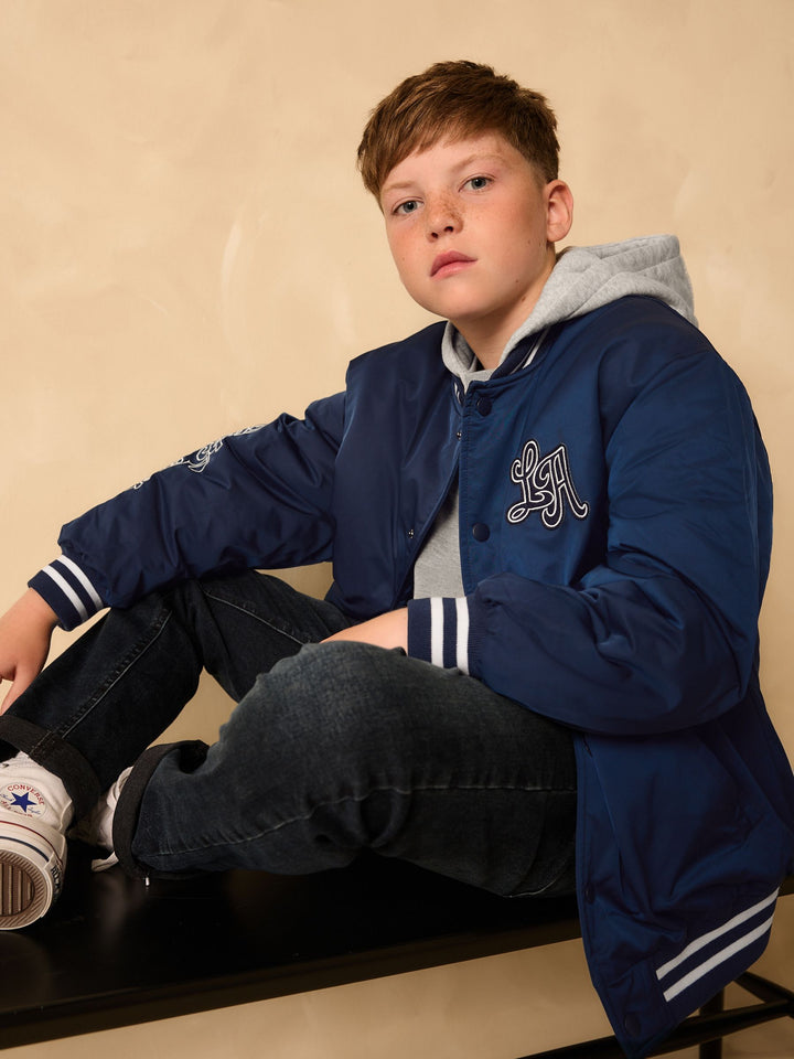 Navy Hooded Varsity Bomber Jacket (3-16yrs)