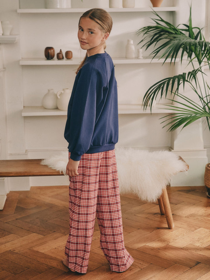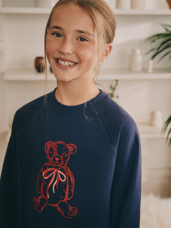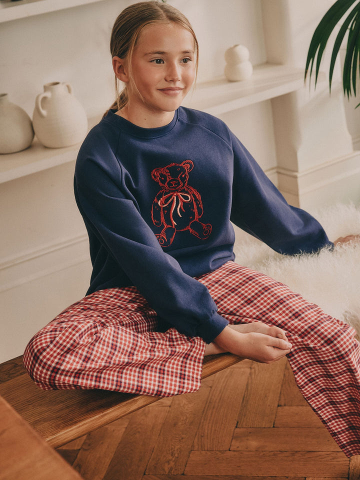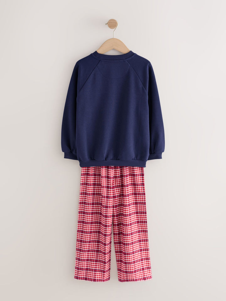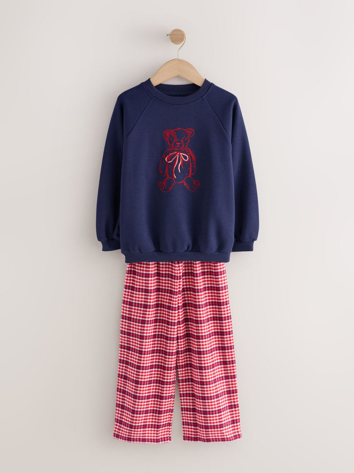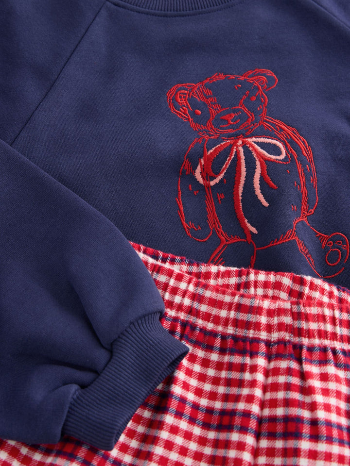 Navy/Red Check Bear Sweatshirt Pyjamas (2-16yrs)