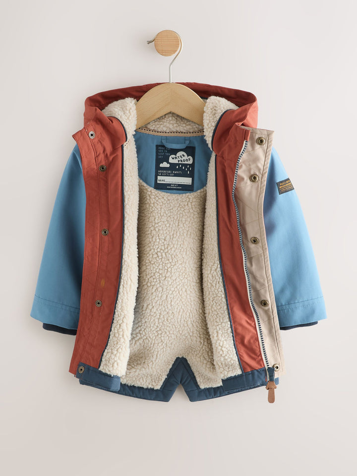 Navy/Red Colourblock Waterproof Borg Lined Parka Coat (3mths-7yrs)