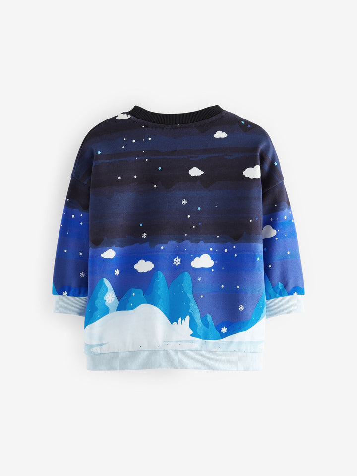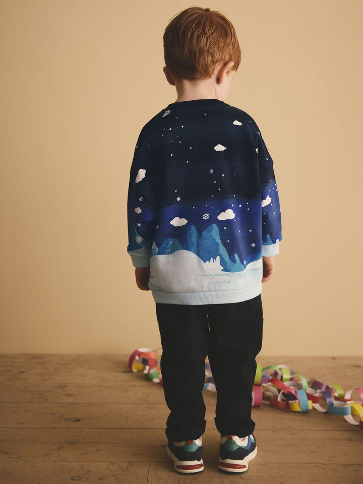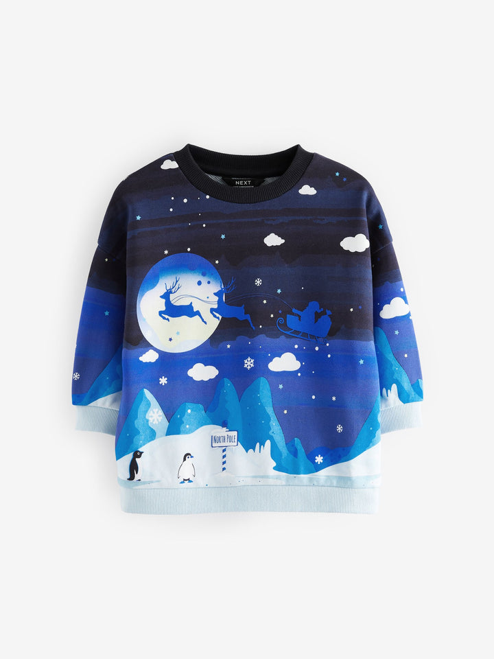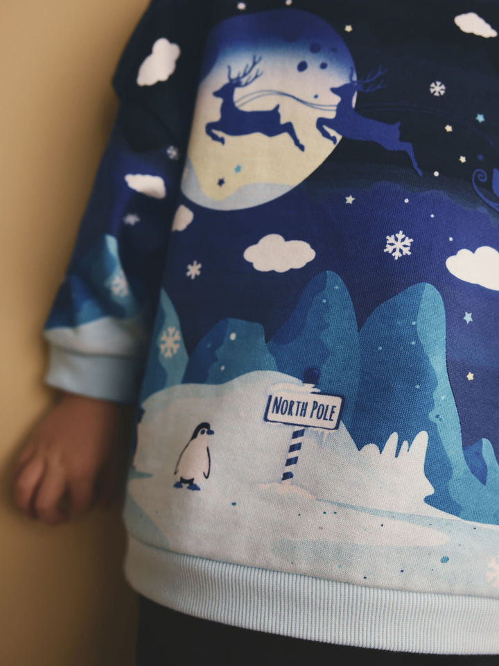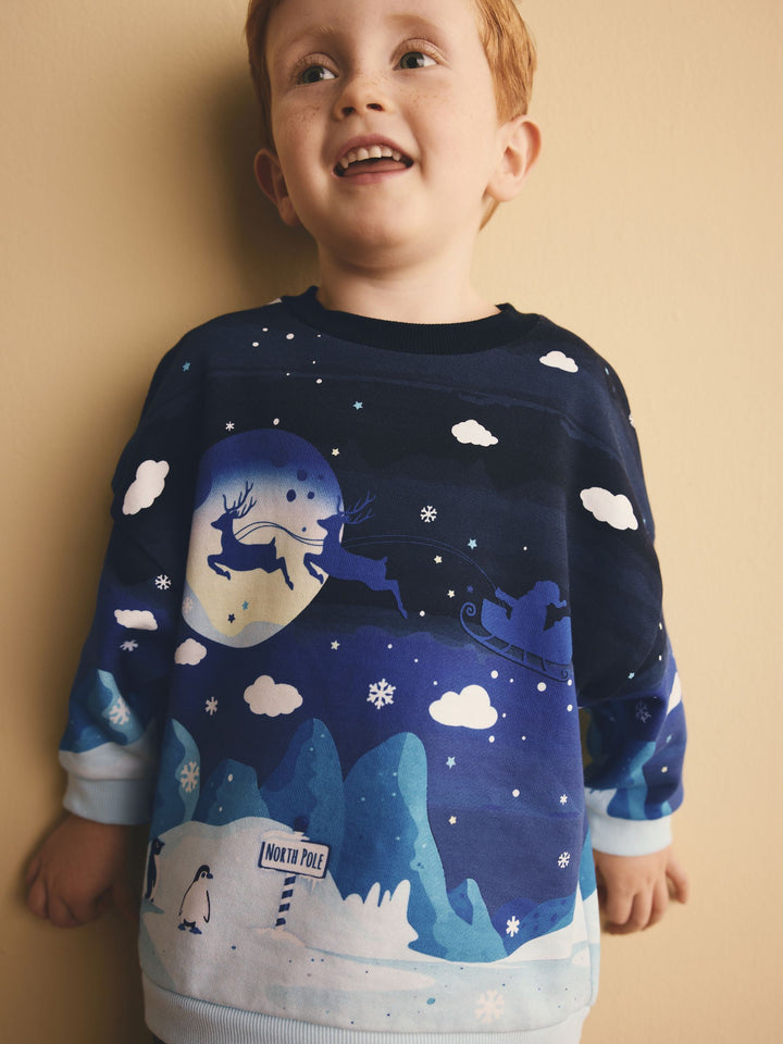 Navy Reindeer Scene Christmas Crew Neck 100% Cotton Sweatshirt (3mths-7yrs)