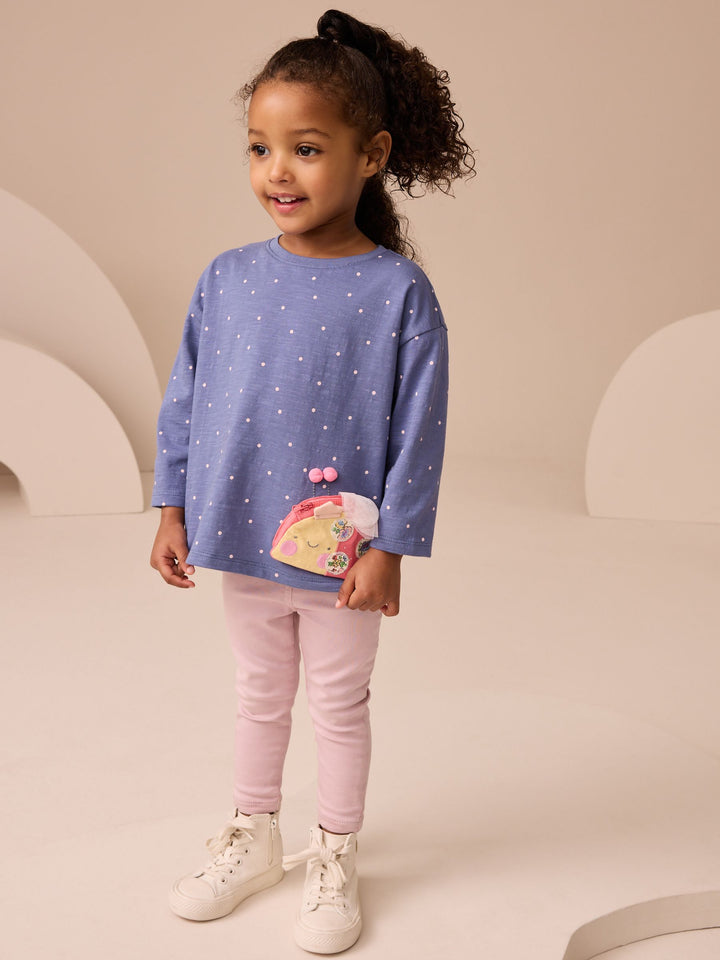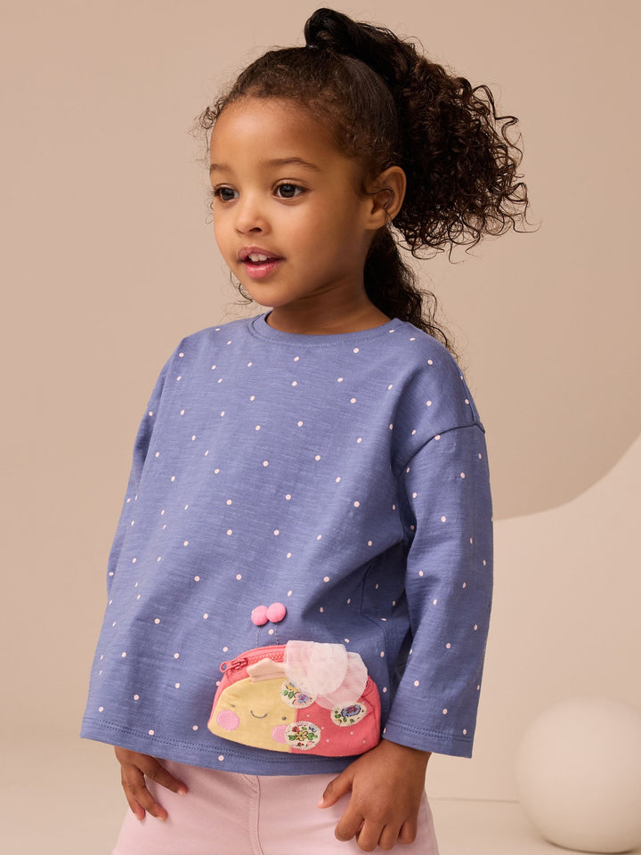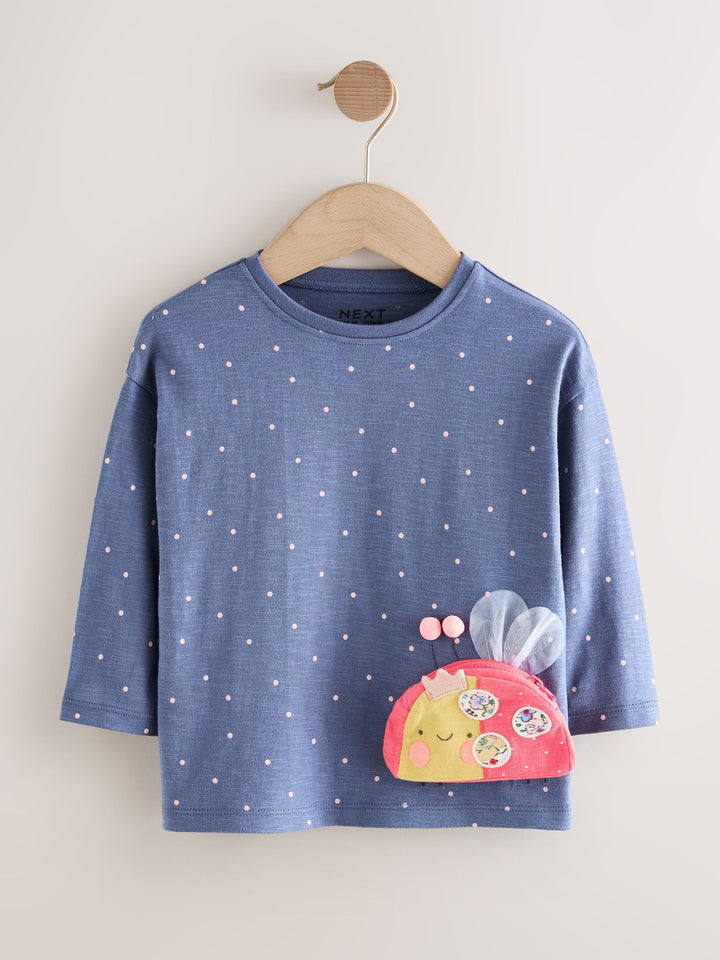 Navy Spot Ladybird Long Sleeve Bag T-Shirt (3mths-7yrs)
