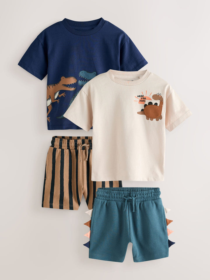 Sweet styles for days when the sun is shining. Our short sleeve t-shirt and shorts 2 pack set is a warm-weather must-have. Crafted from soft and breathable cotton with 3D detail for added fun-factor. Designed to be interchangeable, you can mix and match the t-shirts and shorts to create multiple outfit combinations. T-shirt and shorts 2 pack 100% cotton Machine washable. T-shirt Navy, T-shirt Cement, Shorts Teal and Shorts Stripe 100% Cotton. Country of Origin: Bangladesh