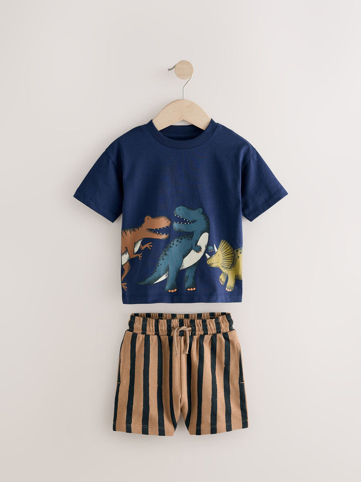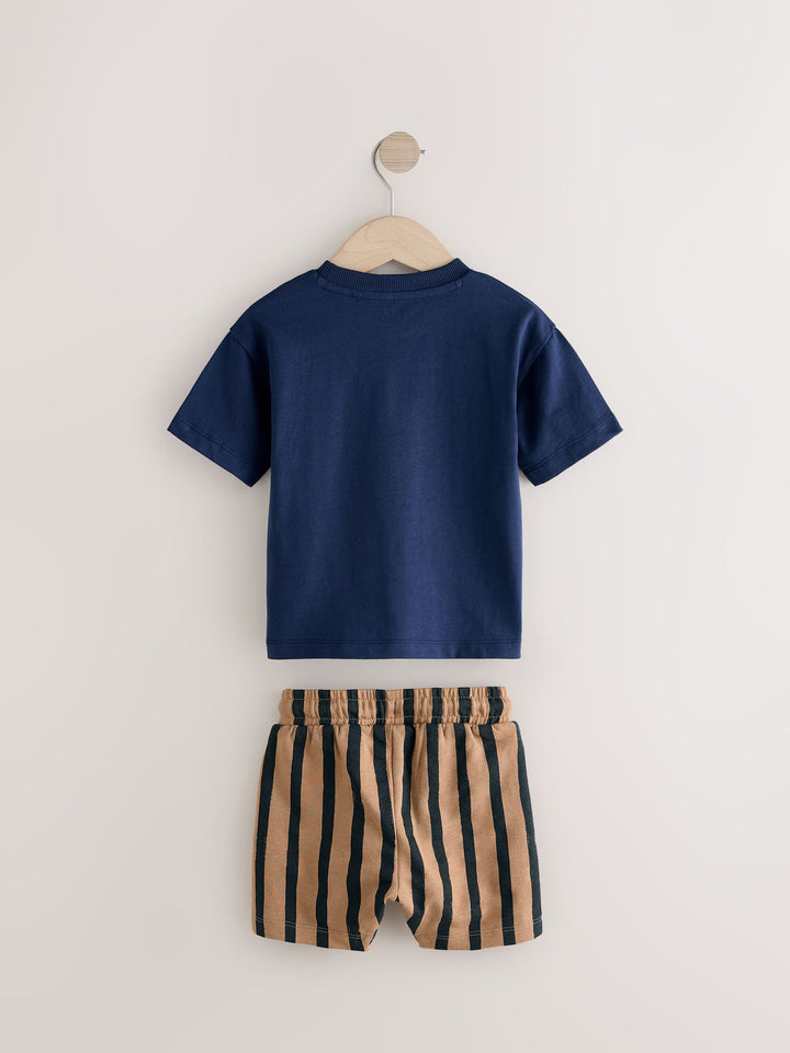 Navy/Stone Short Sleeve T-Shirt & Shorts Set 2 Pack (3mths-7yrs) (3mths-7yrs)