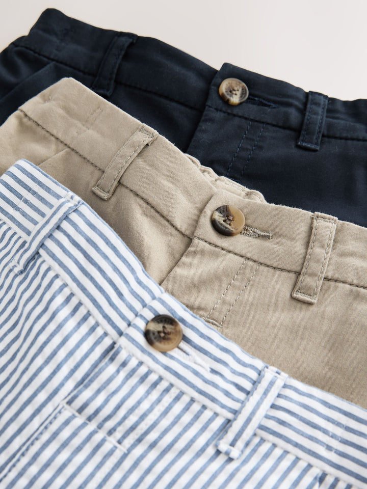 Navy/Stone/Ticking Stripe Chinos Shorts 3 Pack (3mths-7yrs)