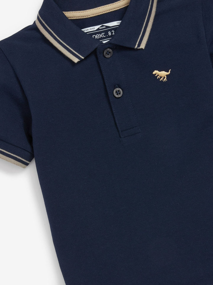Navy Tipped 100% Cotton Short Sleeve Polo Shirt (3mths-7yrs)